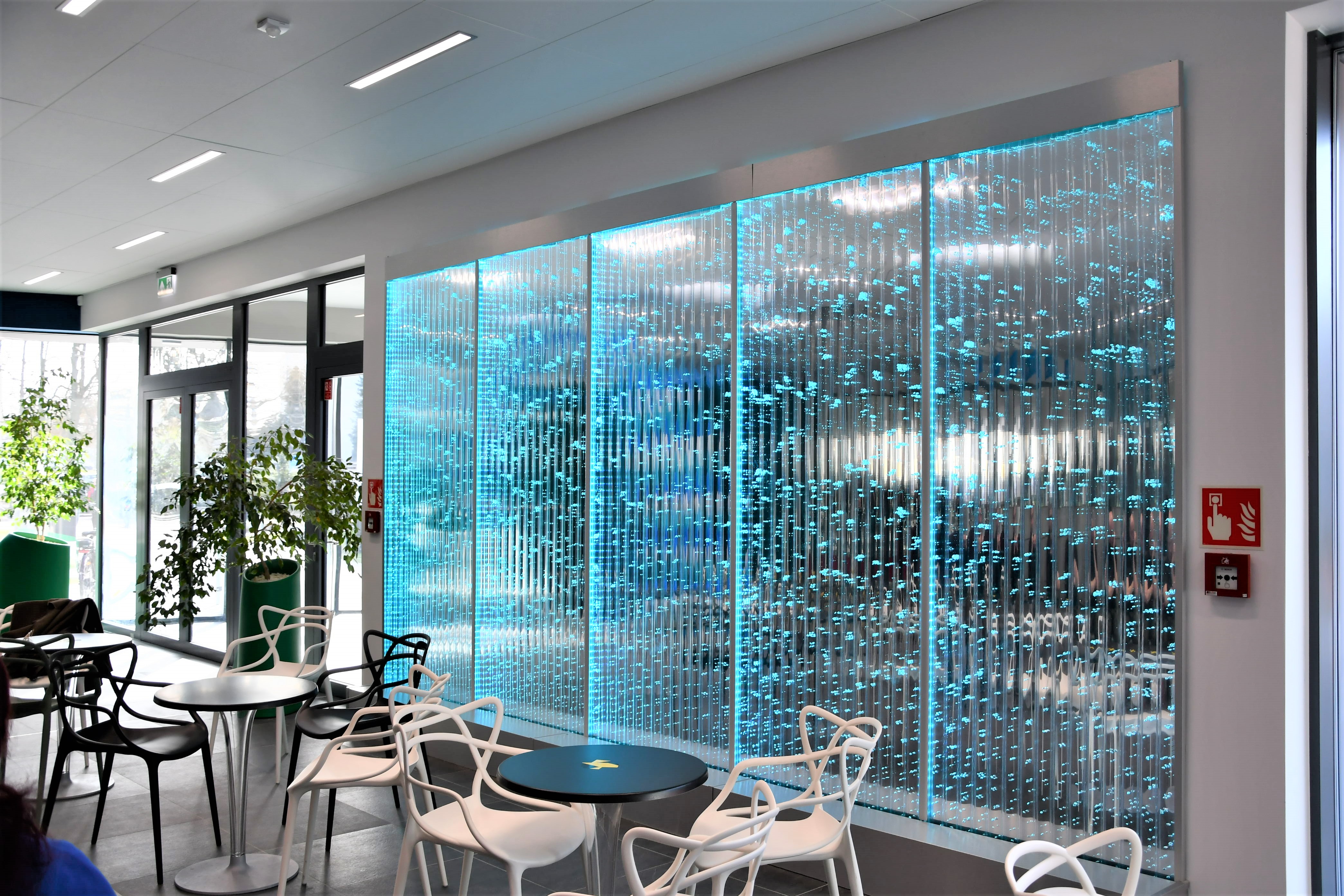 - Podświetlana ścianka wodna w holu – 70 tys. złotych