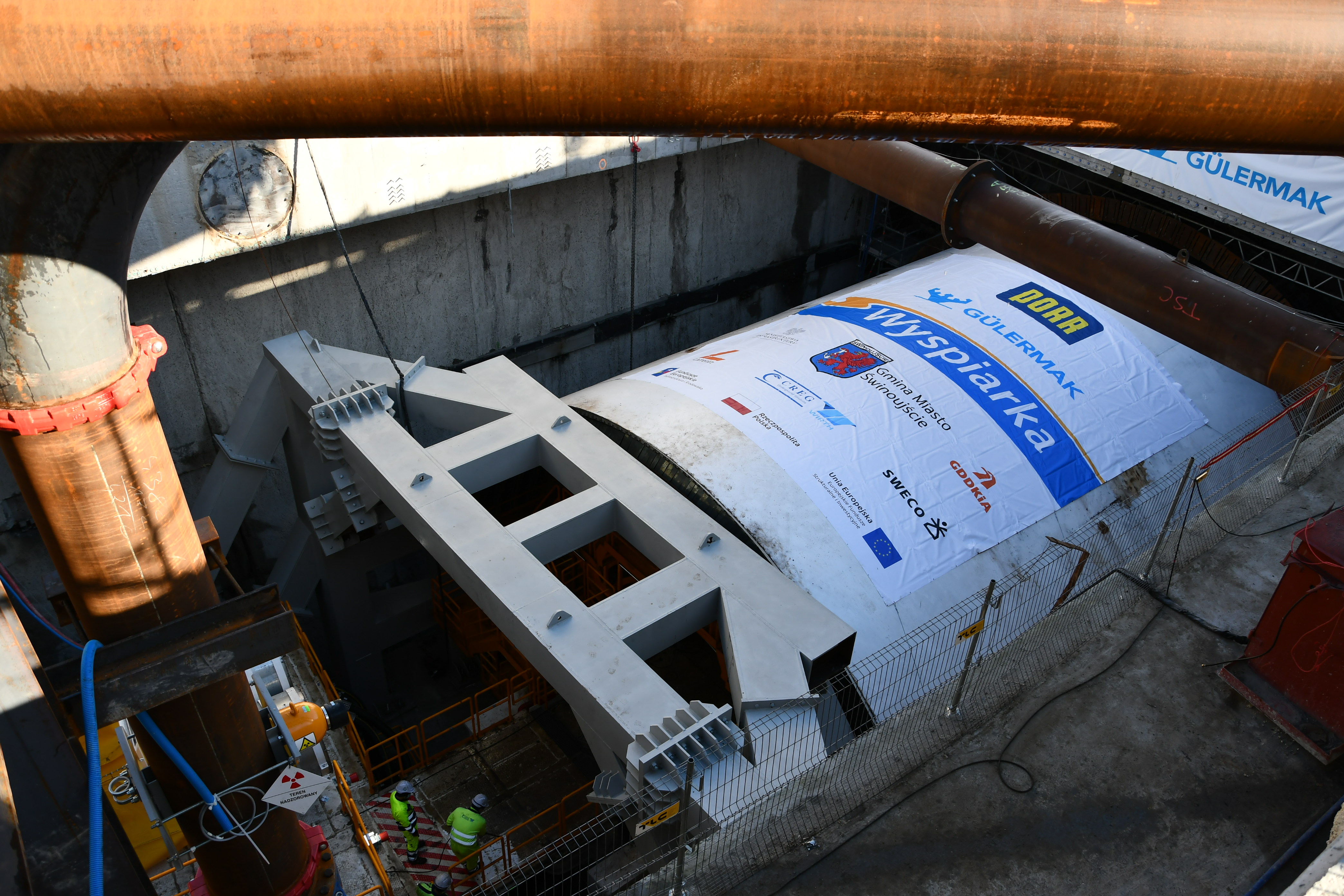 Na zdjęciu TBM Wyspiarka tuż przed rozpoczęciem drążenia tunelu pod Świną.