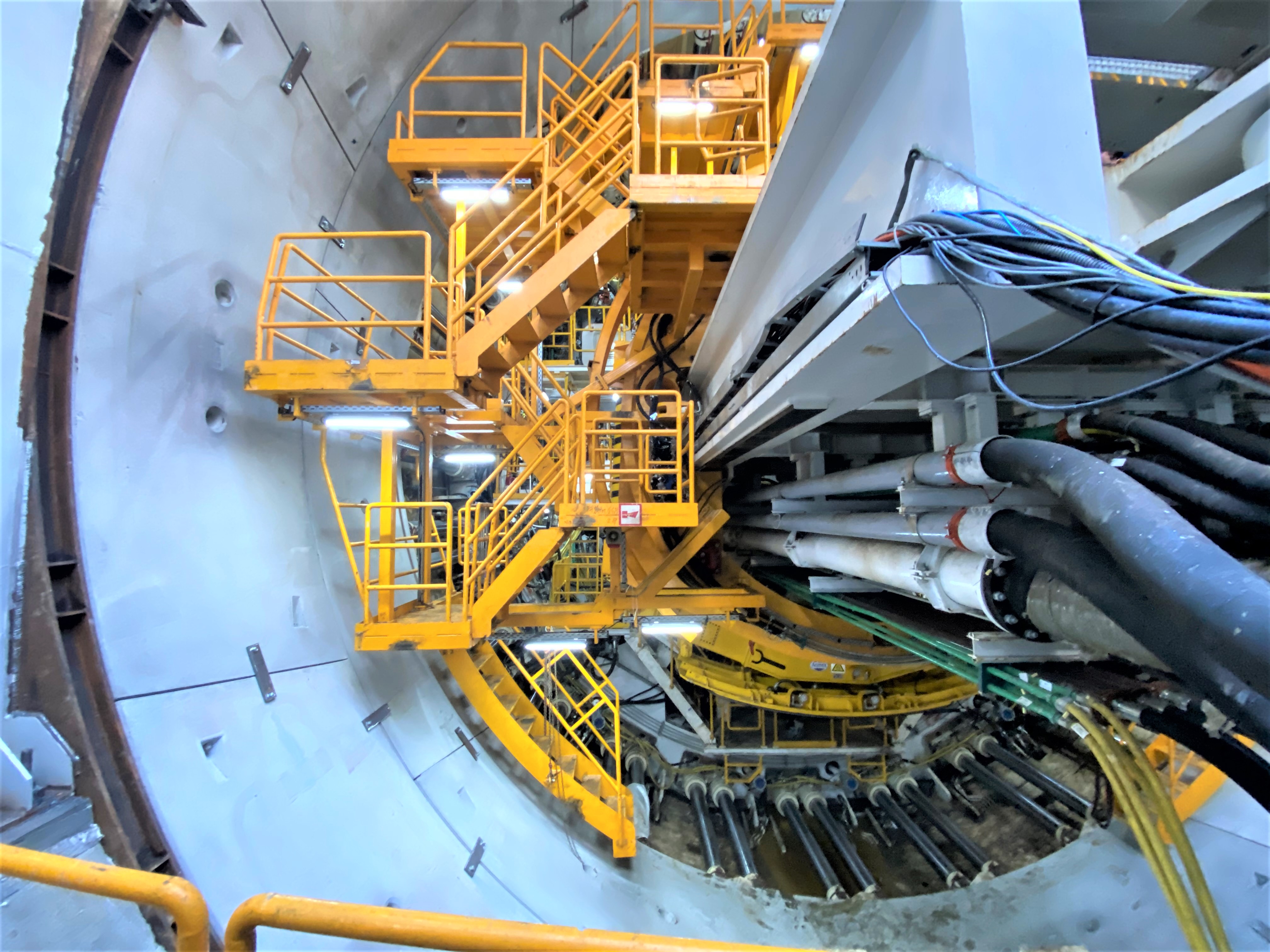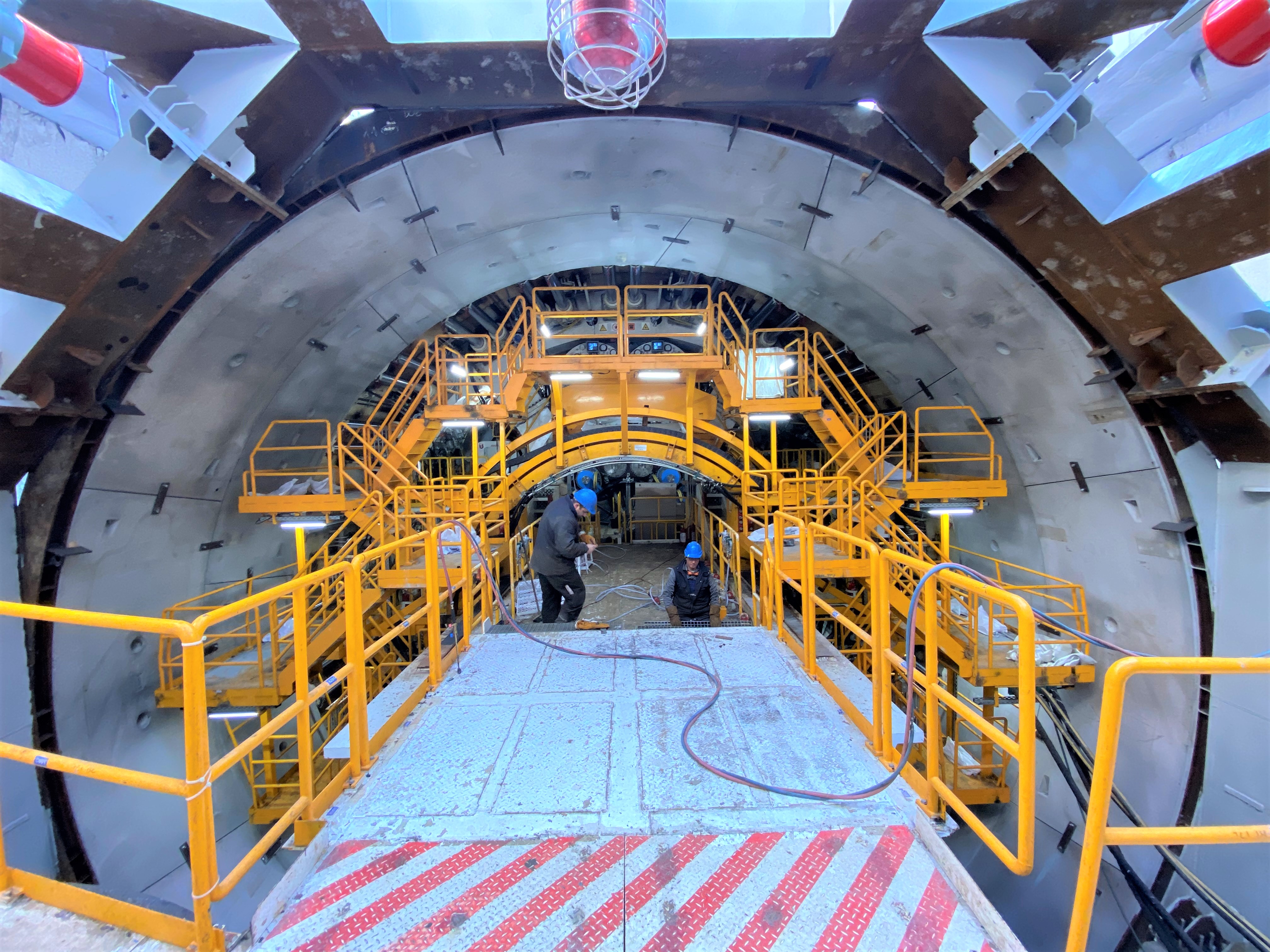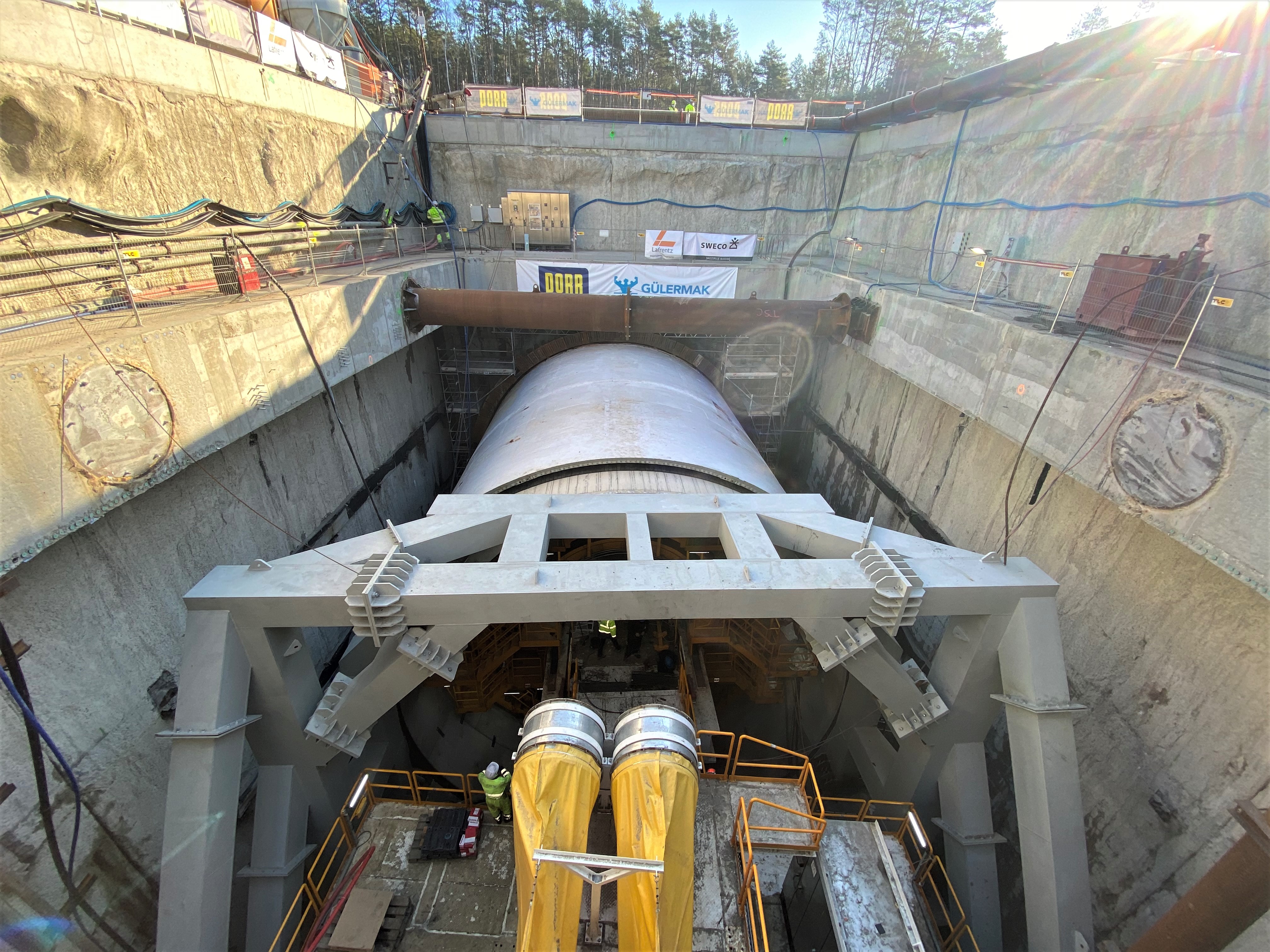 W chwili oficjalnego uruchomienia, widać było maszynę TBM w szybie startowym, tuż przy betonowej, zbrojonej szklanym włóknem ścianie o grubości 1,2 metra. Najpierw musi ją pokonać, aby móc przejść do kolejnego etapu, czyli wiercenia w długim na 15 metrów bloku wejściowym.