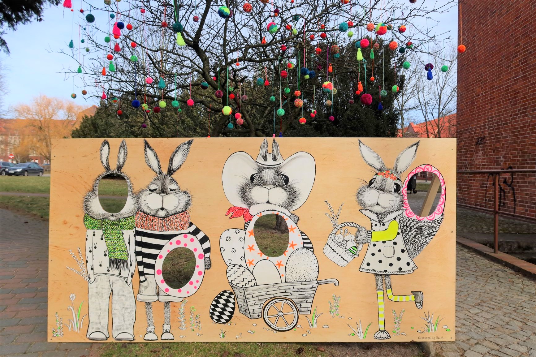 Możecie sobie zrobić zdjęcia z brygadą naszych „wesołych zajączków” rozkicanych wśród neonowych pisanek. Na Miejski Dom Kultury wspinają się zające… Ile ich jest? Czego chcą? Wyśledźcie je i zaproponujecie dla nich imiona. Pod naszym pomponowym drzewem znajdziecie świąteczną fotościankę, dzięki której Wasze rodzinne świąteczne zdjęcie nie będzie takie jak zwykle. Stwórzcie fotokartkę swojej rodzinki i pochwalcie się w komentarzu! Czekamy na Was na naszym facebook @swinoujsciemdk. I dobrych świąt…mimo wszystko!