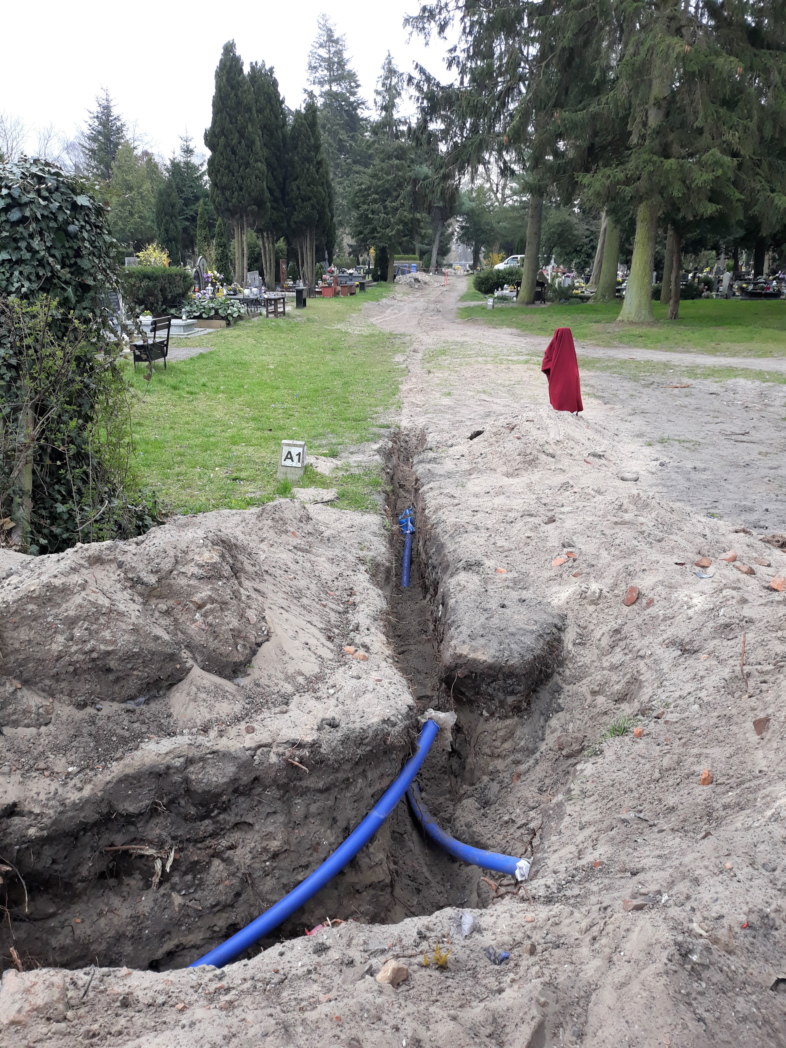 Z powodu przecieków konieczna była wymiana 421 metrów wodociągu biegnącego pod alejkami cmentarza komunalnego przy ulicy Karsiborskiej. Od przyszłego tygodnia skończą się problemy z wodą w kranach przy alejkach w centrum nekropolii, a kilka dni później także w tych na prawo od głównej bramy.