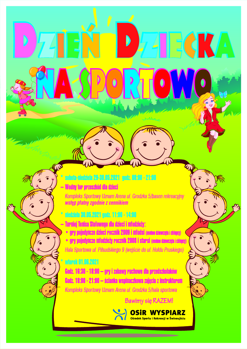 Ośrodek Sportu i Rekreacji "Wyspiarz" zaprasza wszystkie dzieci i młodzież na Dzień Dziecka w Uznam Arenie przy ulicy Grodzkiej. We wtorek 1 czerwca zapewniamy gry i zabawy w ramach DNIA DZIECKA NA SPORTOWO, m.in. wspinaczkę na ściance wspinaczkowej. Przygotowaliśmy miłe niespodzianki. Oczywiście imprezy są nieodpłatne. Zaczynamy o godzinie 16.30.