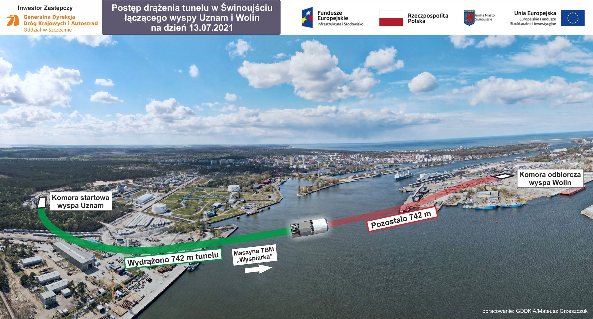 13 lipca 2021 roku maszyna drążąca TBM Wyspiarka minęła 742 metr tunelu, który na stałe połączy wyspy Uznam i Wolin, a samo Świnoujście z resztą kraju. W tej chwili TBM znajduje się w najgłębszym miejscu, czyli niemal 40 metrów pod lustrem wody.