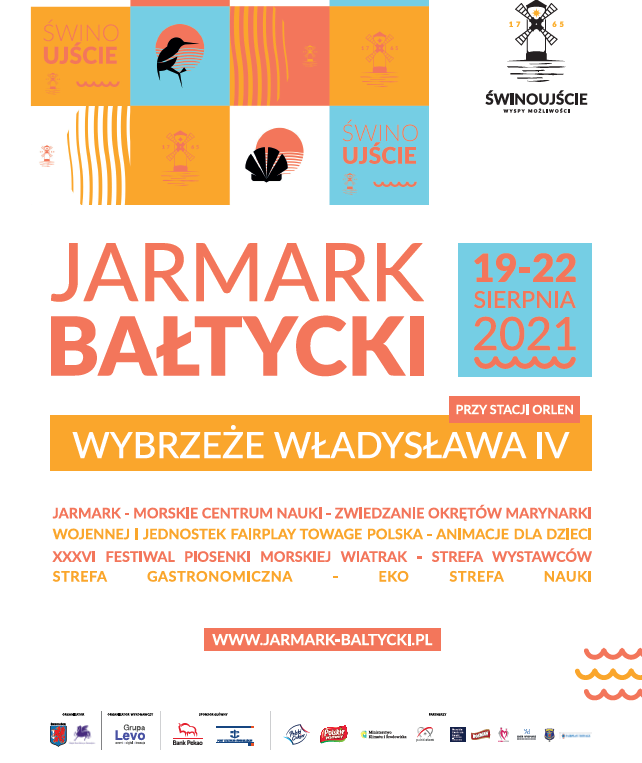 Serdecznie zapraszamy na Jarmark Bałtycki oraz XXXVI Festiwal Piosenki Morskiej „Wiatrak” Sea&Folk, które odbędą się w dniach 19 – 22.08 2021 w Świnoujściu na Wybrzeżu Władysława IV (za stacją paliw PKN Orlen)