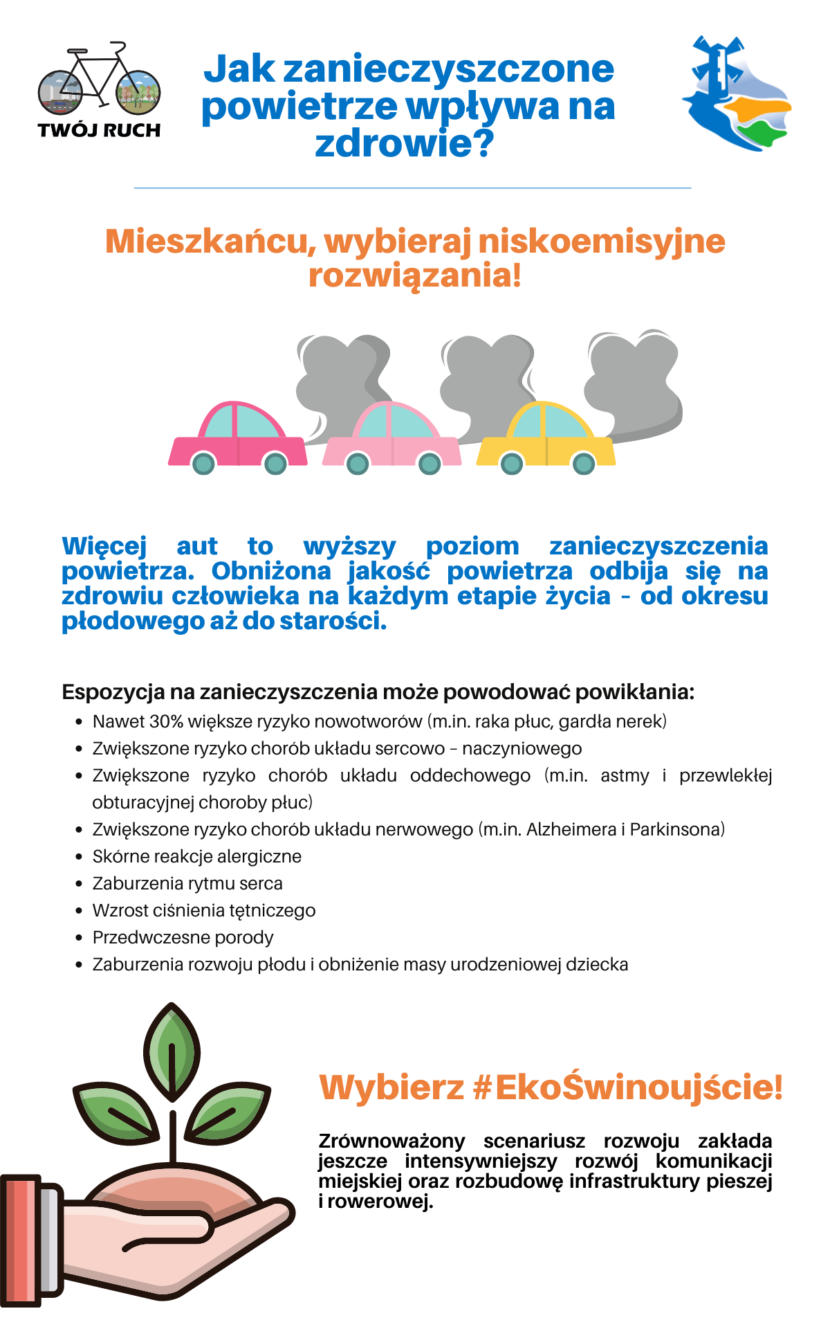 Więcej aut to wyższy poziom zanieczyszczenia powietrza. Obniżona jakość powietrza odbija się na zdrowiu człowieka na każdym etapie życia – od okresu płodowego aż do starości.