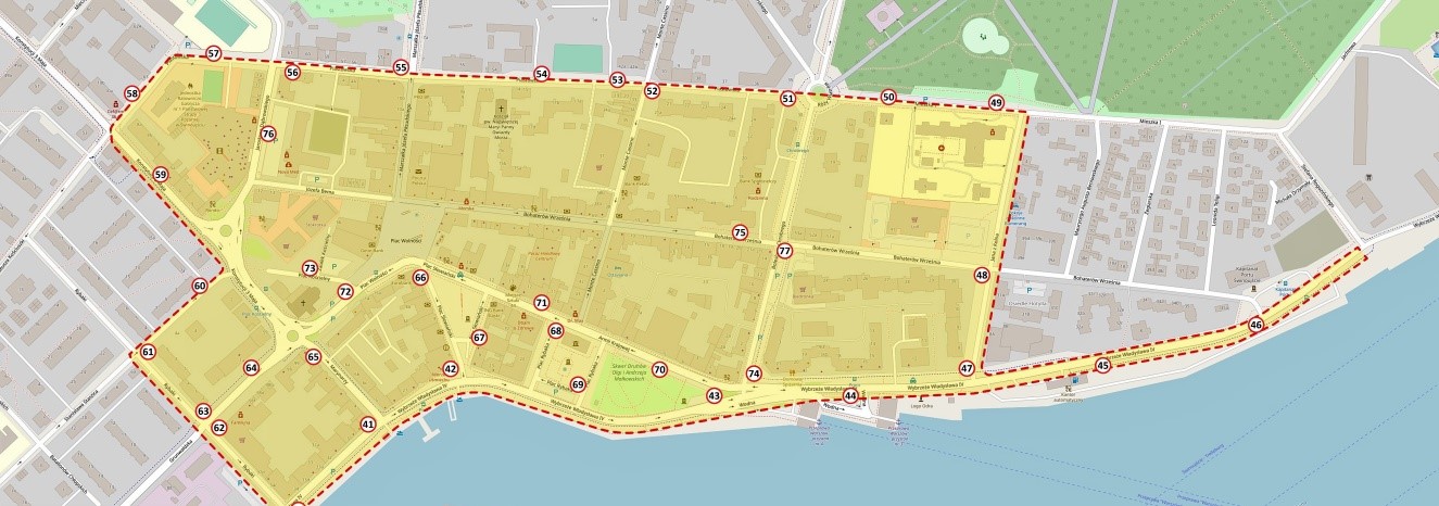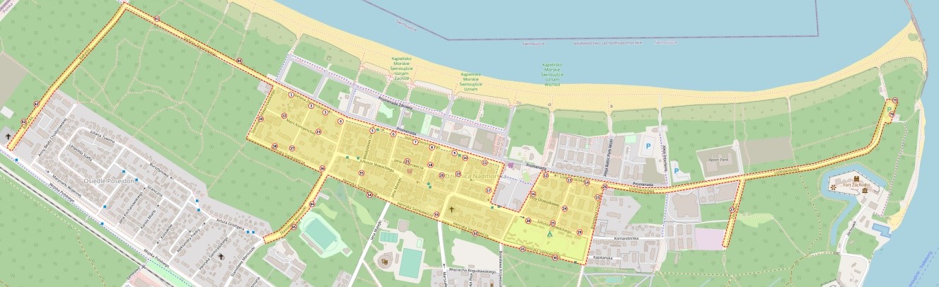 Obecny zakres strefy płatnego parkowania w Świnoujściu.
