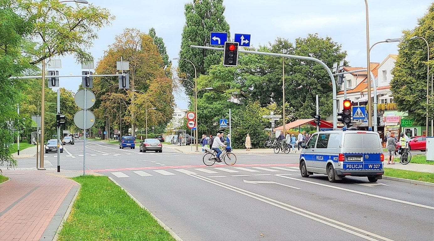 Sygnalizacja acykliczna na skrzyżowaniu ulic Wojska Polskiego i 11 Listopada w Świnoujściu.