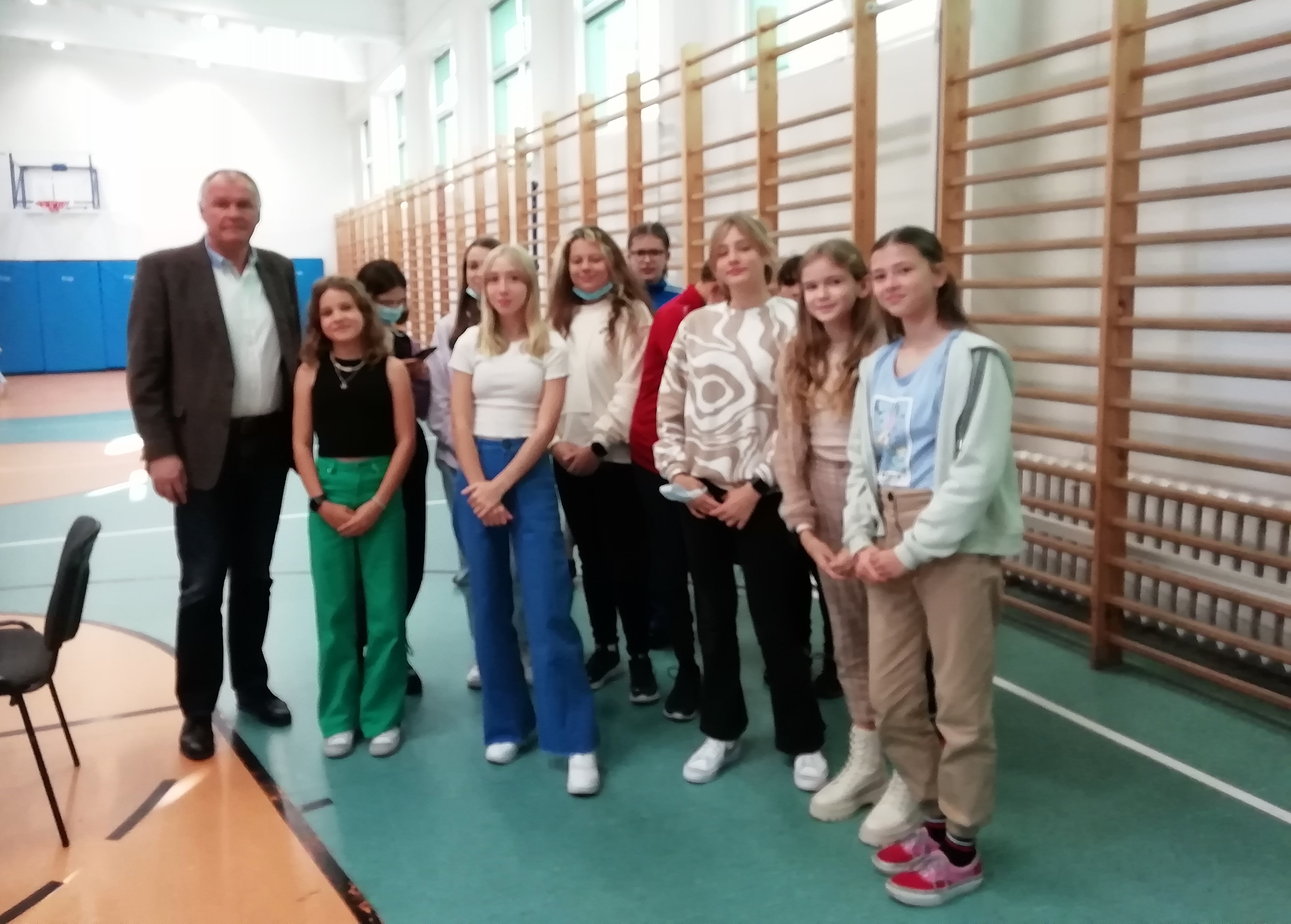 Pan Marian Woronin opowiadał o największych sukcesach, wytrwałości i cierpliwości sportowca oraz o wielu innych chwilach, których doświadczył podczas swojej kariery. Podczas spotkania odpowiadał na pytania związane ze sportem. Wspominał dzień, kiedy przebiegł dystans 100 metrów w 10 sekund i tym samym ustanowił rekord Europy „do dzisiejszego dnia żaden z Polaków nie zbliżył się do tego wyniku” nadmienił z żalem Pan Marian Woronin i zachęcał do systematycznego treningu, czerpania satysfakcji z rekordów życiowych. Gość w jednym zdaniu zawarł receptę na sukces w sporcie: ”Trzeba ciężko pracować i nie załamywać się porażkami”.