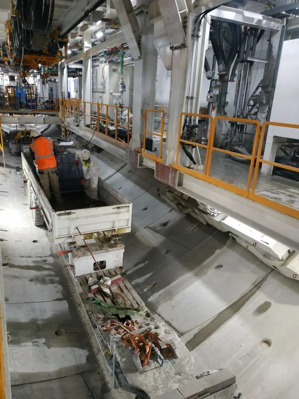Na wyspie Wolin w komorze odbiorczej kontynuowane są prace przygotowawcze związane z demontażem maszyny TBM. Trwa czyszczenie tarczy i montaż uchwytów demontażowych. Czyszczona jest też sama komora.