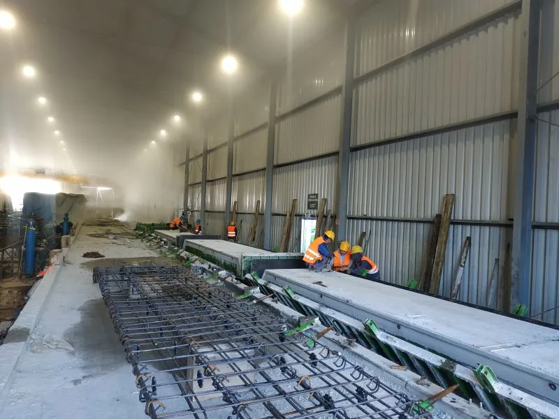 W zakładzie prefabrykacji wciąż produkowane są prefabrykaty na konstrukcje wewnętrzne w tunelu - pod płytę jezdną (typ „U”) i filigrany oraz płyty sufitowe. Wykonane już elementy na bieżąco są transportowane na plac składowy.