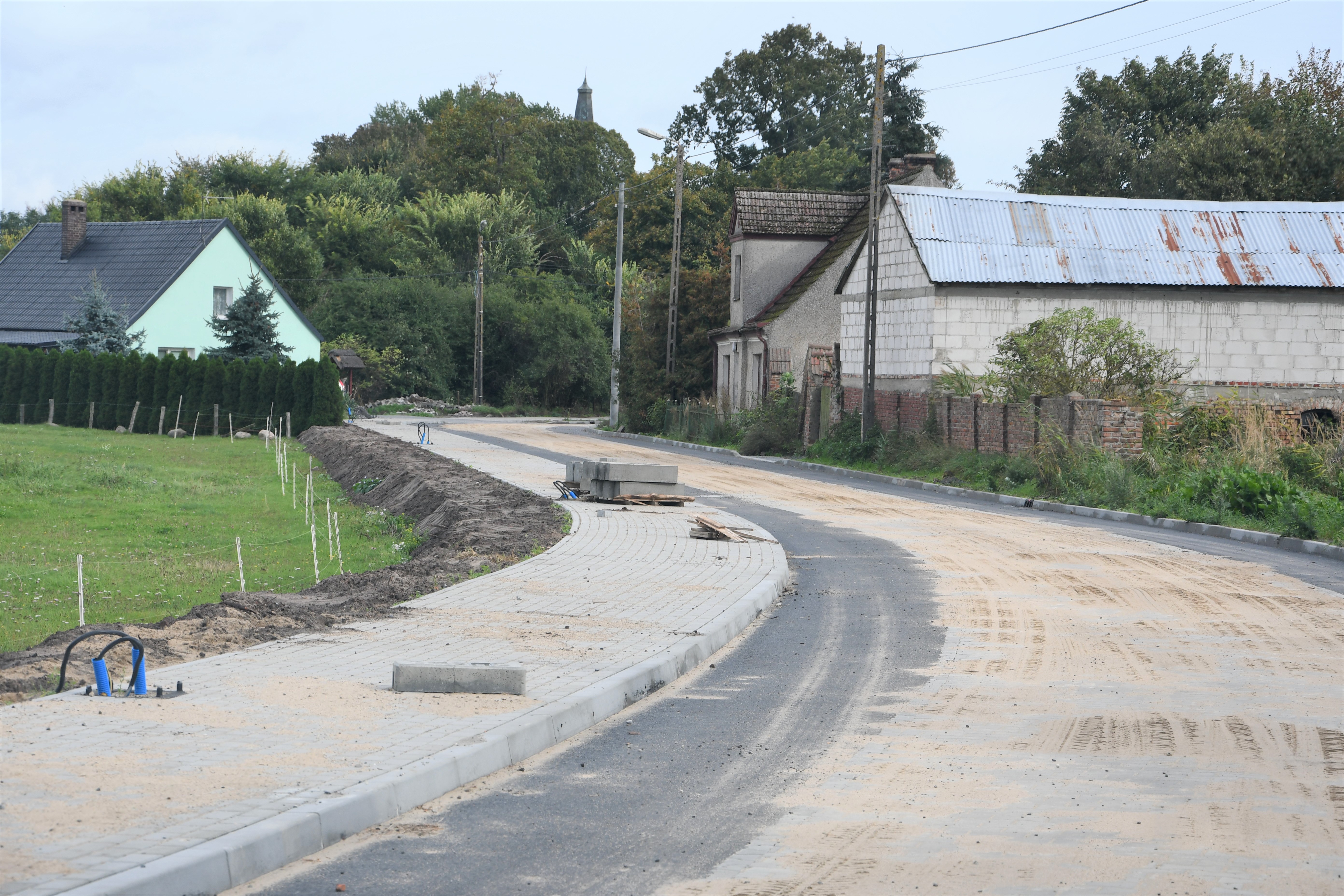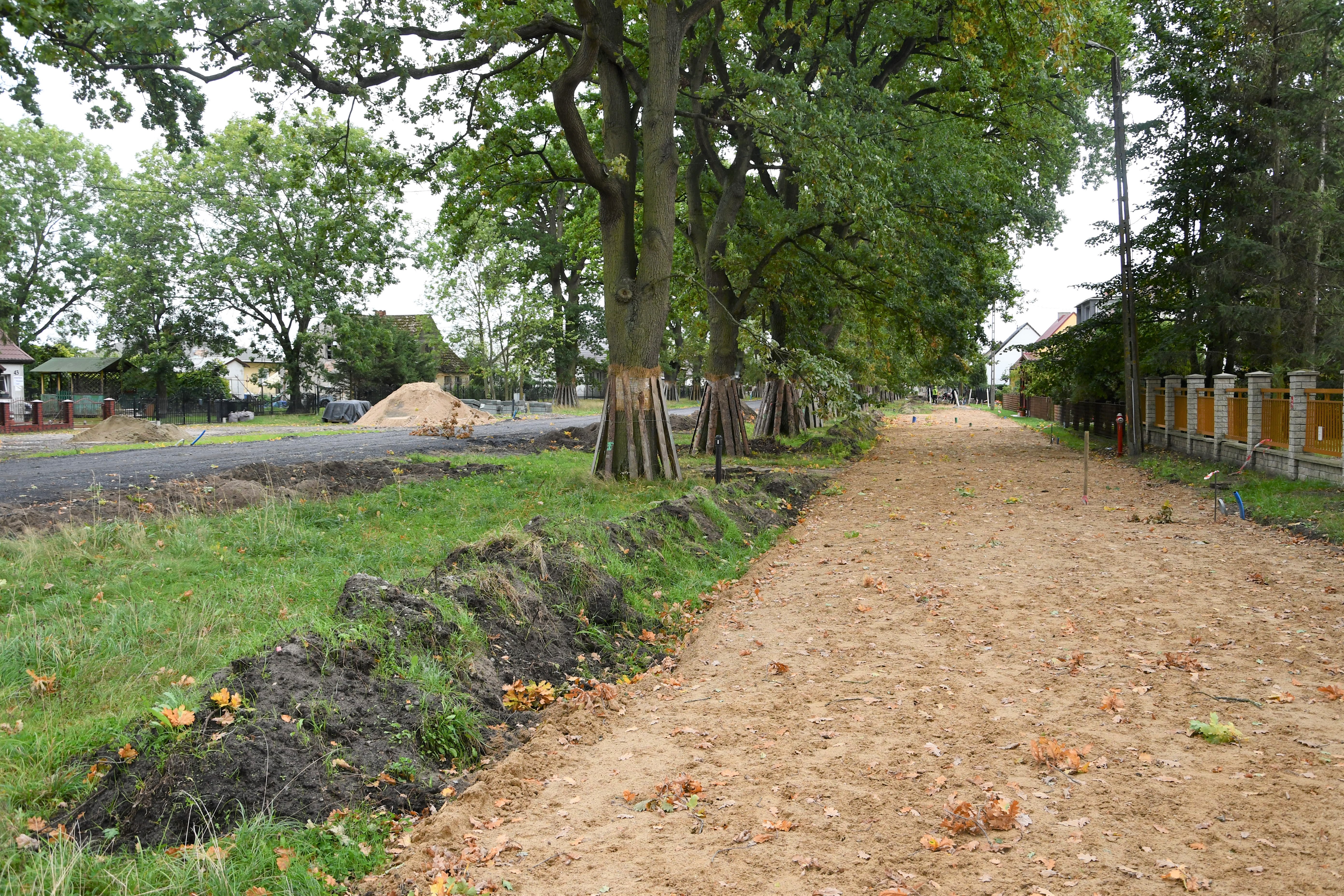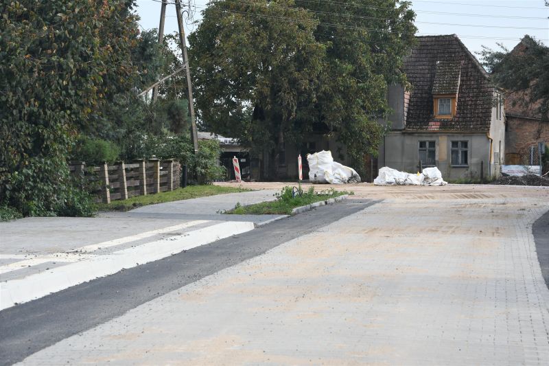 Gotowy jest już chodnik, położona kostka na jezdni, a wcześniej oczywiście wymienione sieci biegnące pod drogą. Do położenia pozostała ostatnia warstwa asfaltu na pasie dla rowerów, oświetlenie uliczne, oznakowanie pionowe i poziome, formowanie poboczy i prace wykończeniowe.