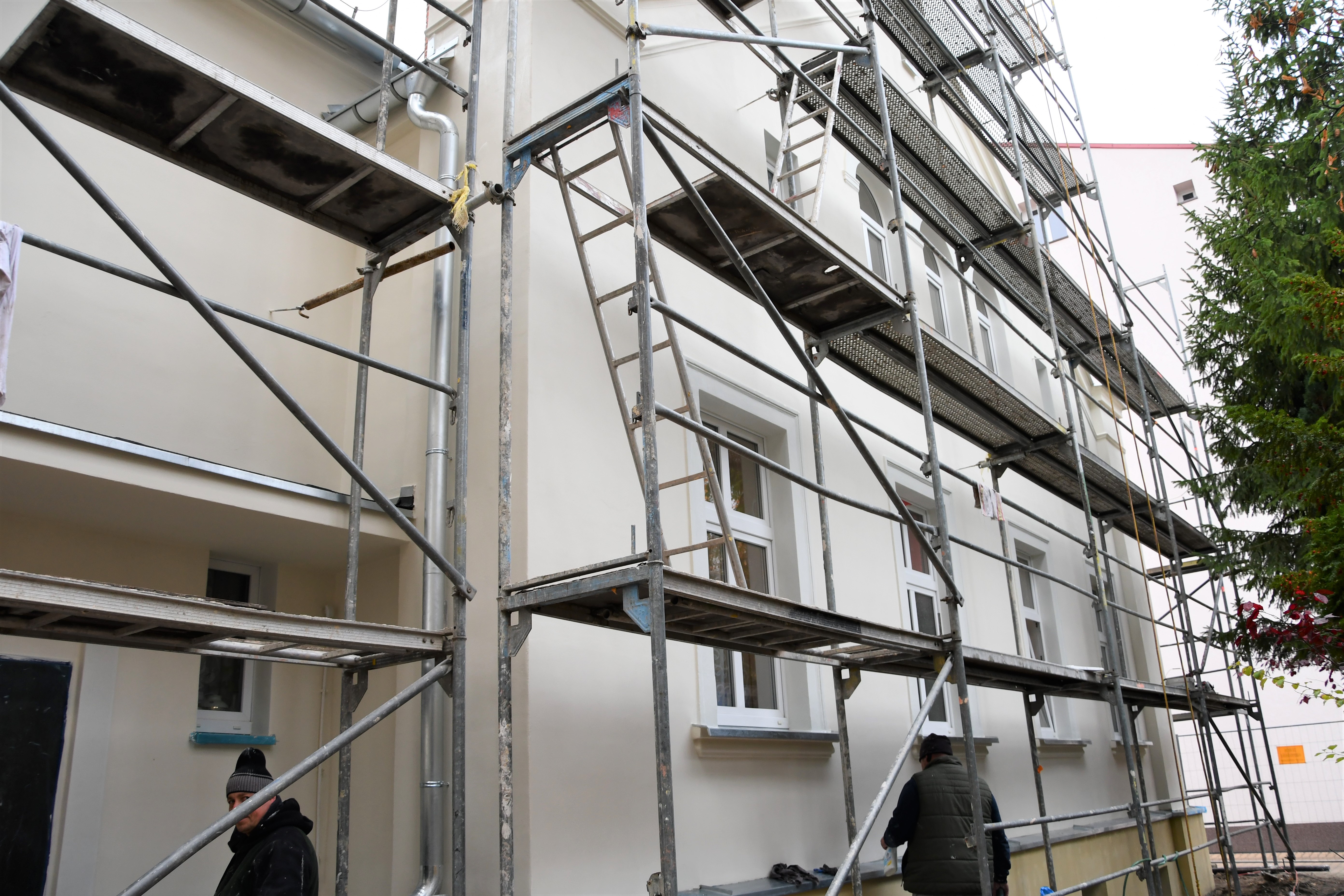 Prace obejmują nie tylko sam budynek, ale także przybudówkę przylegającą do zachodniej ściany poradni.