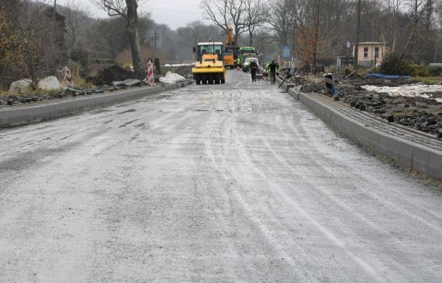 Chodzi o odcinek ulicy Grunwaldzkiej od skrzyżowania z ulicą Krzywą do granicy z Niemcami. Zgodnie z zapowiedziami, wykonawca jest gotowy do położenia asfaltu na tym odcinku. Pozostałyby tylko roboty na chodniku. Nadal jednak (zgodnie z harmonogramem) trwają prace od odcinku Mazowiecka-Krzywa. Przejazd samochodów odbywa się tam wąskim objazdem.