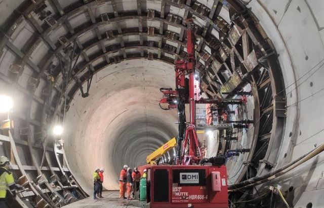 W wydrążonym tunelu z pomocą specjalnej maszyny wykonywane są wsporniki pod płytę podstropową i jezdną. Trwają także roboty przy wyjściach ewakuacyjnych.