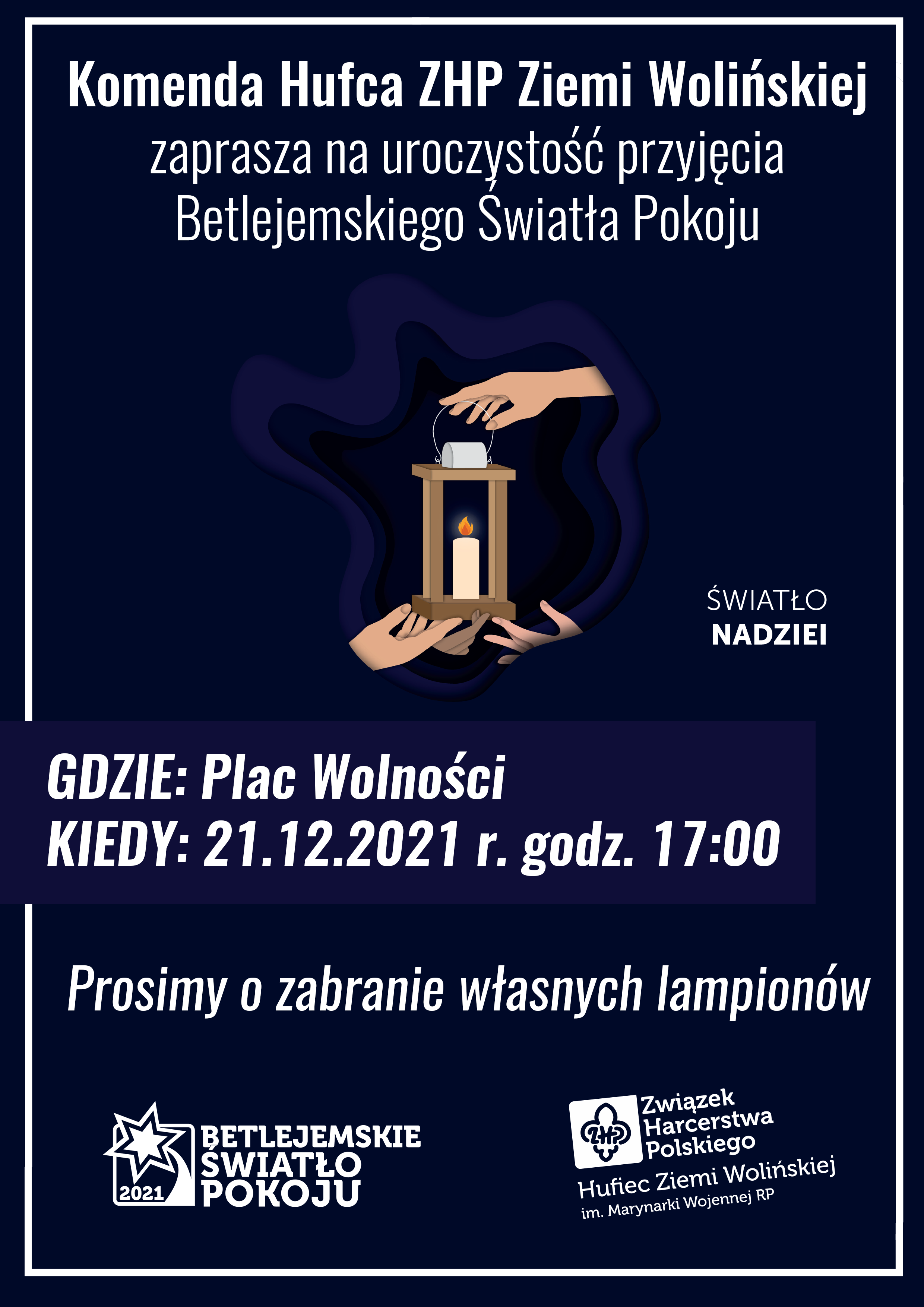 W Świnoujściu zapraszamy Państwa do odbioru światła w dniu  21 grudnia o godzinie 17.00 na plac Wolności.  Przyjdźcie Państwo z własnymi lampionami, choć dla zapominalskich też coś znajdziemy.  Niech ten symboliczny ogień zapłonie na Waszych wigilijnych stołach. Niech łączy, niech daje nadzieję.