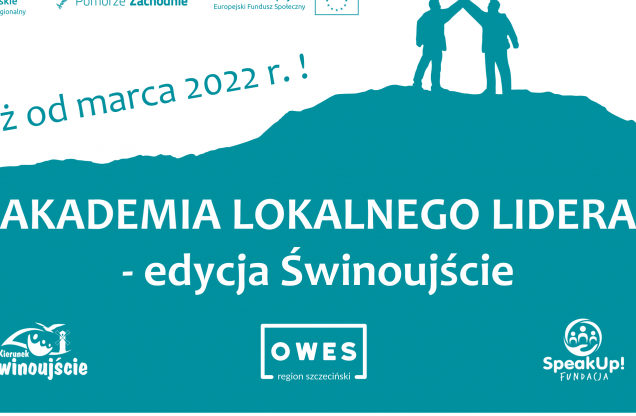 Akademia Lokalnego Lidera organizowana jest w ramach projektu „SZOWES - OWES w regionie szczecińskim” współfinansowanego z Regionalnego Programu Operacyjnego Województwa Zachodniopomorskiego na lata 2014-2020 przy współpracy z Stowarzyszeniem Kierunek Świnoujście prowadzącym Centrum Organizacji Pozarządowych oraz Fundacją Speak Up.
