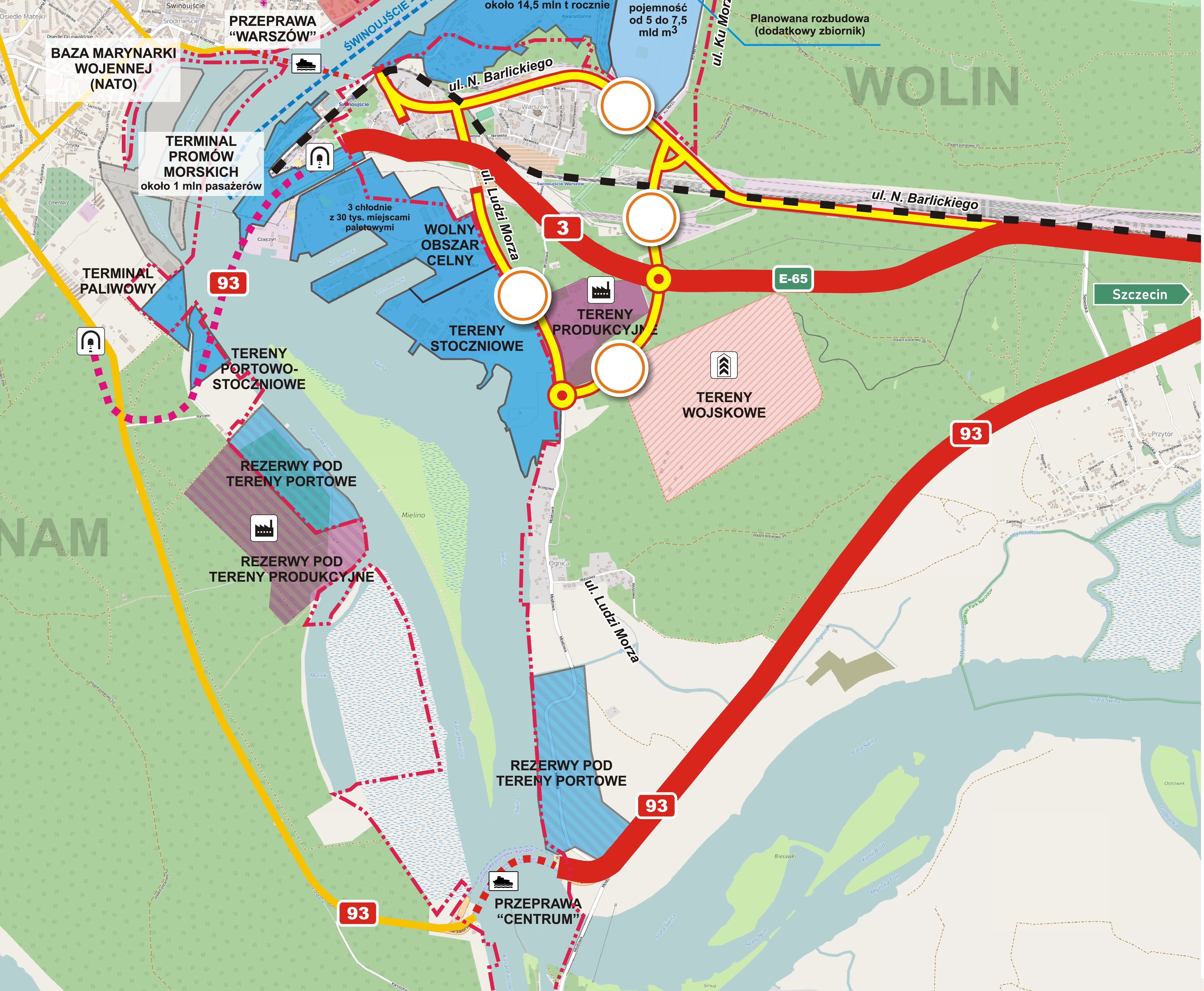 Pełna nazwa inwestycji to „Budowa i przebudowa dróg w ramach zadania inwestycyjnego pn. „Sprawny i przyjazny środowisku dostęp do infrastruktury portu w Świnoujściu – etap I. Będzie to nie tylko największa po tunelu inwestycja drogowa,  ale także inwestycja, która po tunelu otrzymała największe unijne dofinansowanie w historii Świnoujścia - 122 mln złotych z Program Operacyjny Infrastruktura i Środowisko na lata 2014-2020. Część środków przeznaczono na przygotowanie projektów. Ich wykonawcami były firmy z Polski i Francji.