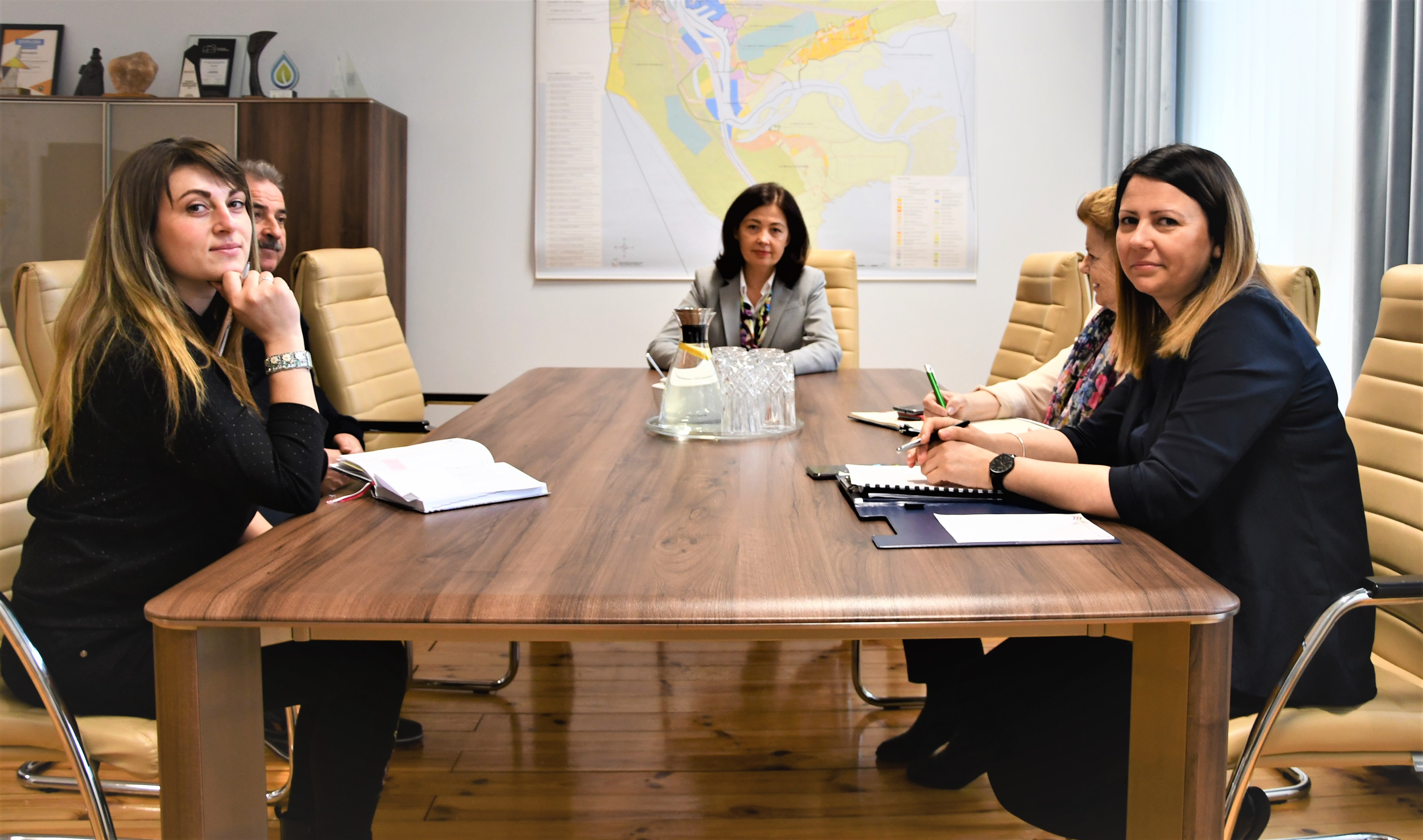 Od lewej: Liliia Kotsiuba-Tkach, pełnomocnik Prezydenta Świnoujścia ds. społeczności ukraińskiej, Piotr Kośmider (PIG), Barbara Michalska, Zastępca Prezydenta Miasta Świnoujście, Mirosława Gąsiorowska (UM), Justyna Tyszkiewicz, dyrektor PUP w Świnoujściu.