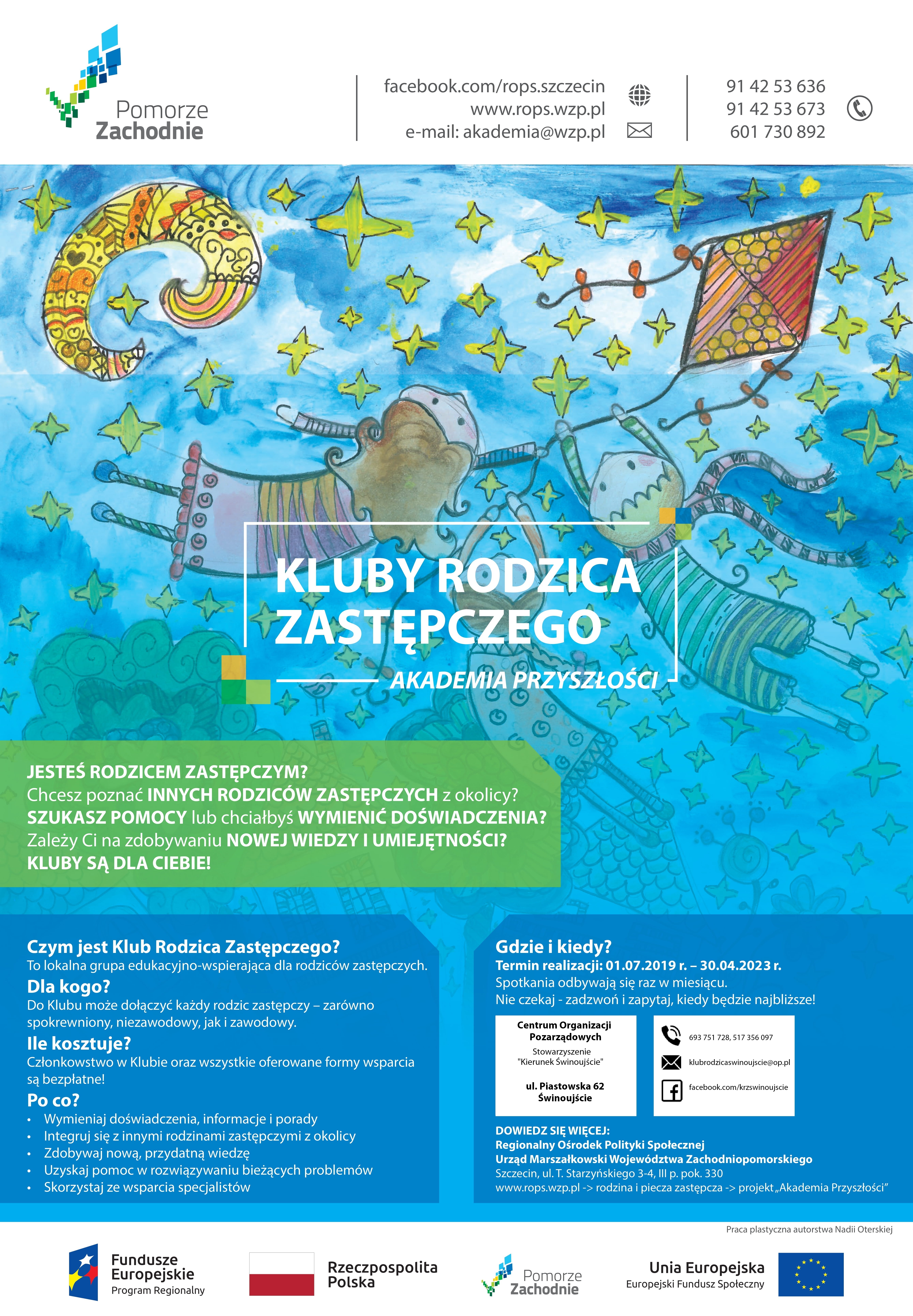Od września 2021r. w Świnoujściu działa nieprzerwanie Klub Rodzica Zastępczego. Prowadzą go Liderki – dwie mamy zastępcze. Spotkania odbywają się w każdą ostatnią środę miesiąca, w godzinach od 16.30 do 19.30.