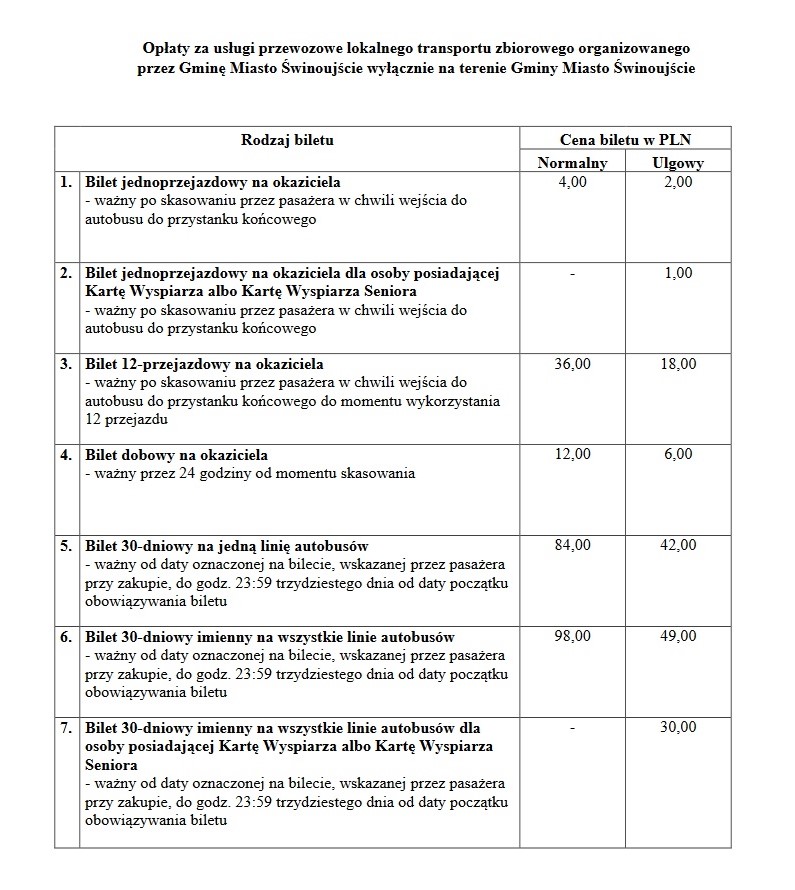 Te ceny obowiązywać będą jednak tylko osoby bez Karty Wyspiarza czy Karty Wyspiarza Seniora, czyli w rzeczywistości tych, którzy odwiedzają Świnoujścia okazjonalnie oraz turystów. Konieczność podwyższenia cen biletów wynika ze znaczącego wzrostu cen oleju napędowego i innych kosztów eksploatacyjnych. Korzystanie z komunikacji autobusowej w sezonie letnim przez turystów powinno też zrekompensować wprowadzoną ulgę dla osób posiadających Kartę Wyspiarza i Kartę Wyspiarza Seniora.