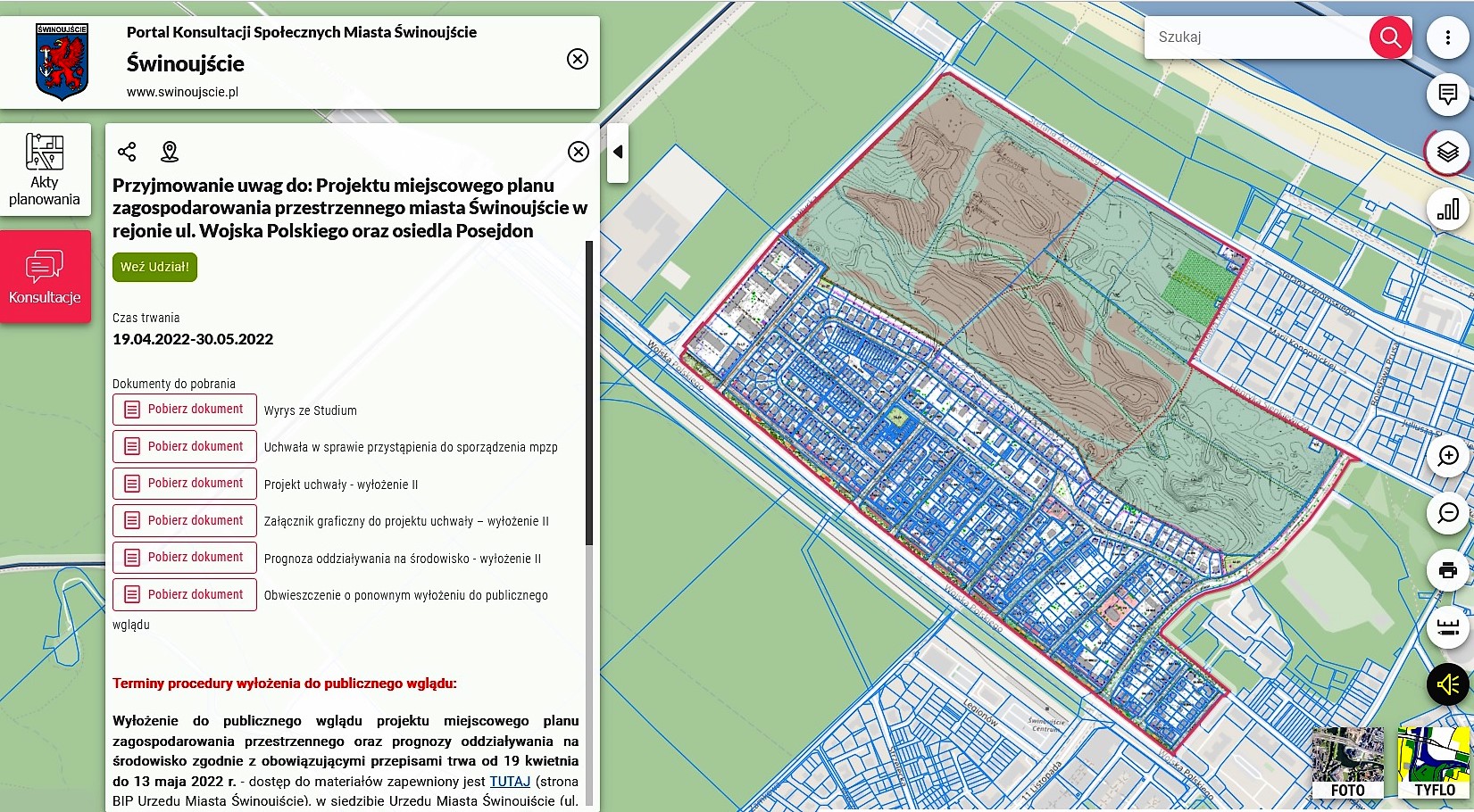 TRWA DRUGIE WYŁOŻENIE PROJEKTU PLANU w rejonie ul. Wojska Polskiego i osiedla Posejdon 19 kwietnia 2022 r. – 13 maja 2022 r.