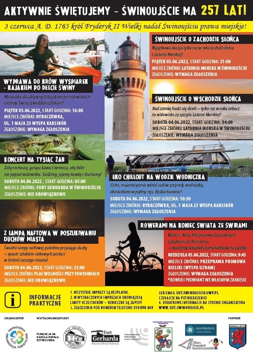 Świnoujska Organizacja Turystyczna wraz z partnerami między innymi Urzędem Miasta Świnoujście zaprasza na weekendowy cykl imprez w czasie których aktywnie i w wyjątkowy sposób przypomnimy o tym jak atrakcyjne jest Świnoujście.