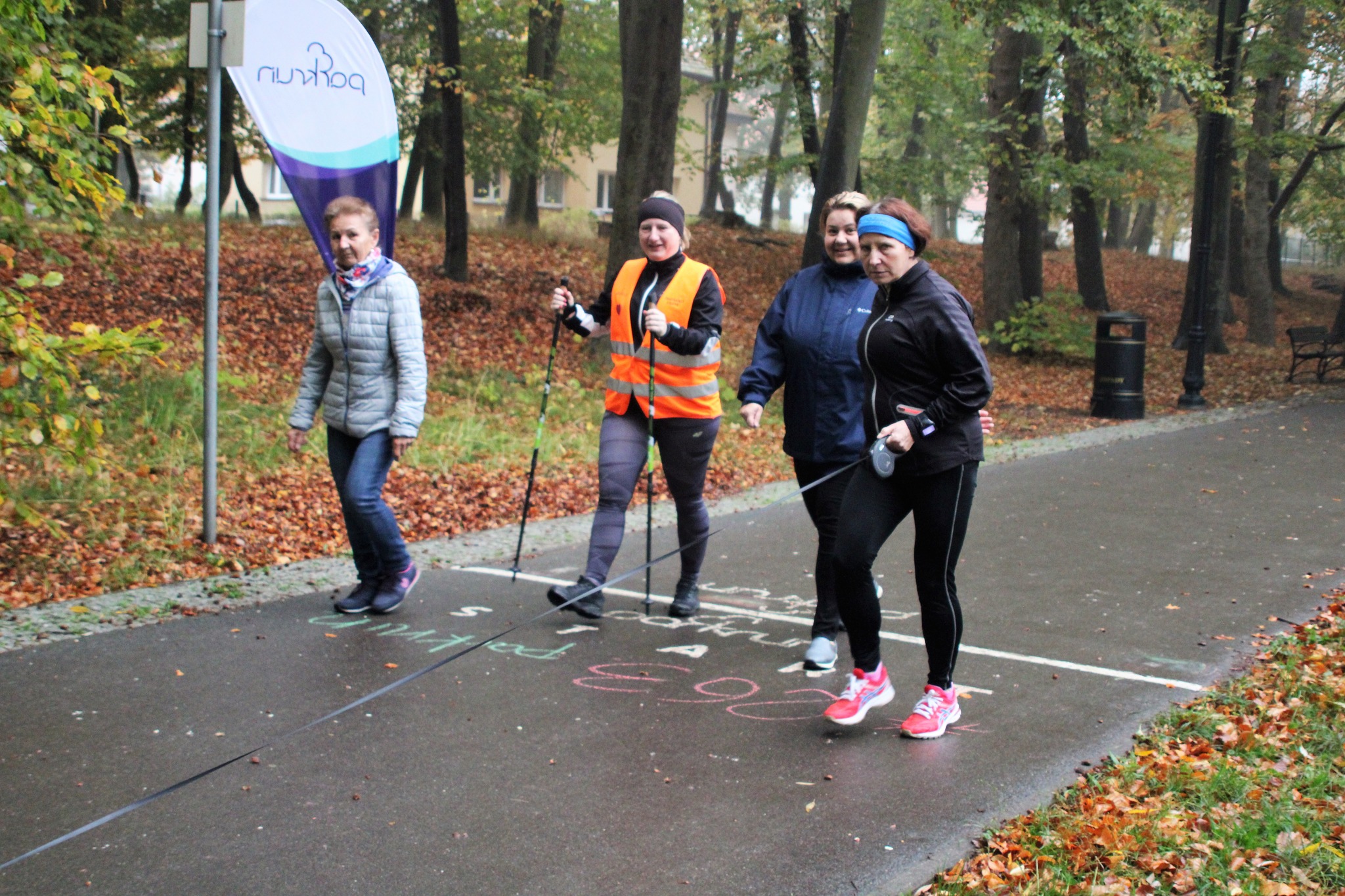 W ramach akcji parkwalk uzbierała się również pokaźna grupa z kijkami i chodziarzy, która pod czujnym okiem parkwalkera (nowa funkcja wolontariatu) a zarazem instruktora nordic walking Marka Stefanickiego dotarła w dobrej kondycji do mety.