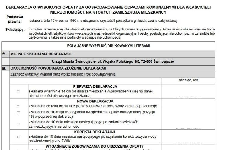 pobierz deklarację z naszej strony https://www.swinoujscie.pl/pl/artykul/482/17533/aktualizacja-wzor-deklaracji-o-wysokosci-oplaty-za-gospodarowanie-odpadami-komunalnymi
