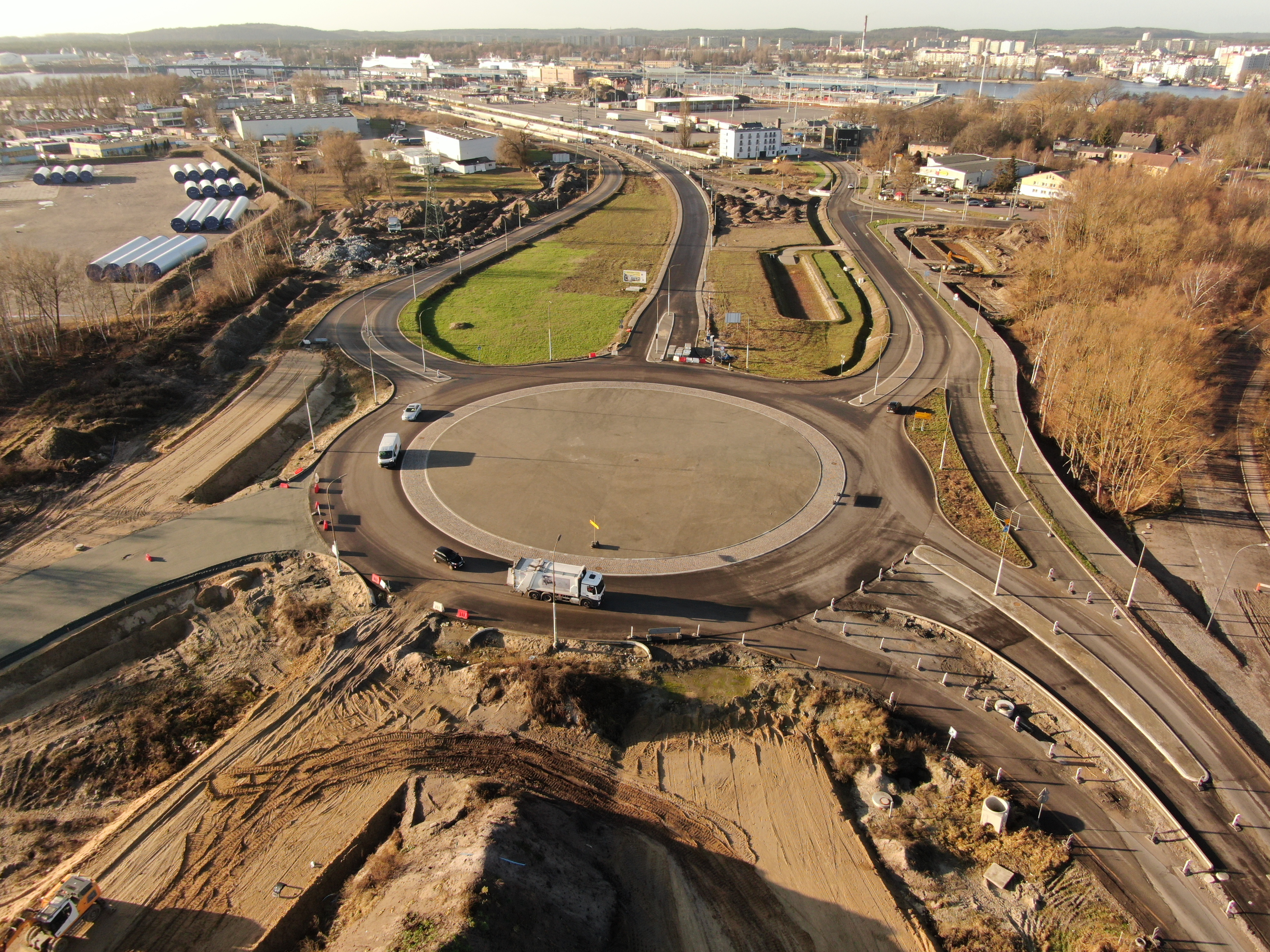 Jak przebiega budowa jezdni w tunelu? Wykonana została izolacja, trwają też prace przy dylatacjach. W komorze startowej i odbiorczej wykonywane są kapy i chodniki, niedługo rozpoczną się prace przy izolacji i układanie warstw bitumicznych. Poza tunelem większość prac drogowych jest już wykonana. Do zrobienia pozostała między innymi nawierzchnia bitumiczna ścieżek pieszo-rowerowych po stronie wyspy Wolin, elementy brukowe i oznakowanie. Obecnie większość prac odbywa się jednak w tunelu, ze względu na harmonogram, jak i na warunki pogodowe. Zgodnie z planem Wykonawcy, nawierzchnia asfaltowa w tunelu będzie wykonywana w marcu tego roku i potrwa około 30 dni.
