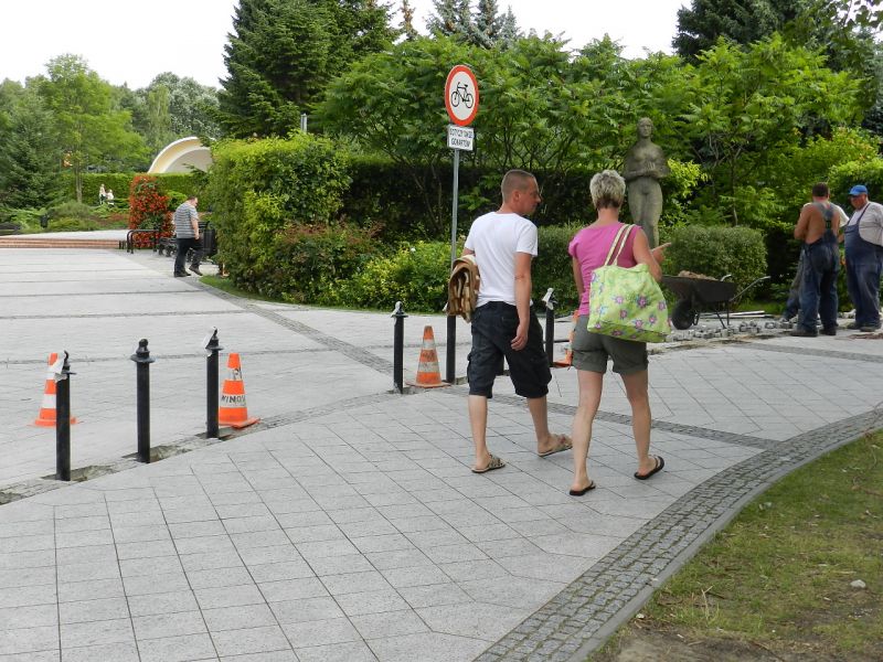 Kończy się ustawianie słupków oddzielających ścieżkę rowerową i chodnik od skweru i placu zabaw przy muszli koncertowej. W dwóch miejscach pozostawiono wjazdy dla matek z wózkami oraz niepełnosprawnych.
