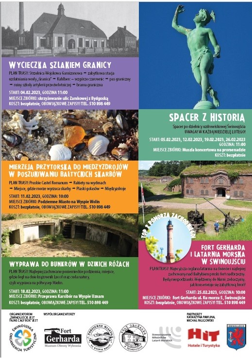 Przypominamy, że wszystkie wycieczki są bezpłatne. W związku z koniecznością ubezpieczenia uczestników sobotnich wycieczek prosimy o potwierdzenie udziału: emailem sot.swinoujscie@wp.pl lub telefonicznie +48 510 898 449.