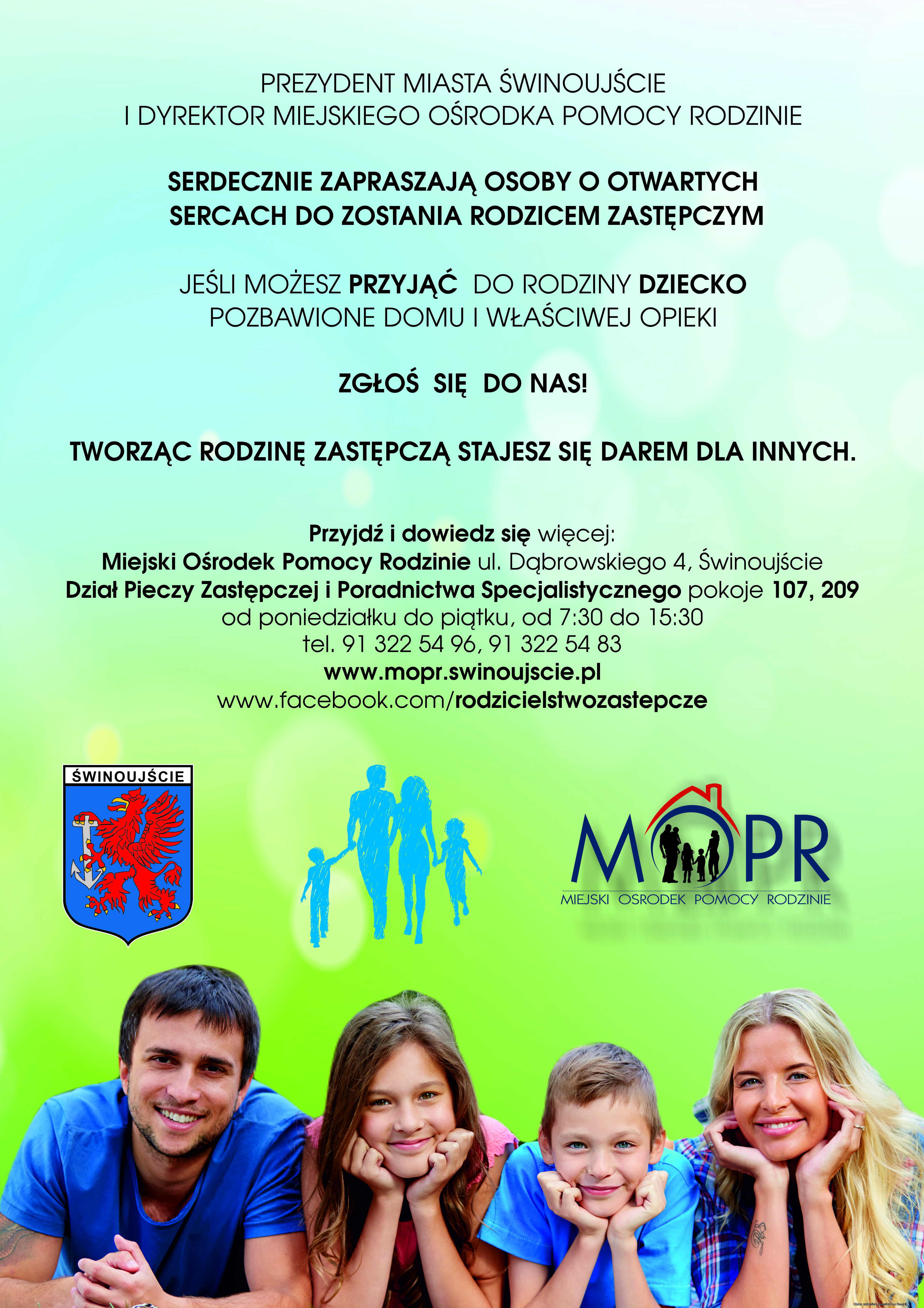 Jeśli temat Cię zainteresował, zapraszam do bezpośredniego kontaktu z pracownikami Działu Pieczy Zastępczej i Poradnictwa Specjalistycznego Miejskiego Ośrodka Pomocy Rodzinie w Świnoujściu (ul. Dąbrowskiego 4, pokój 107 I piętro, pokój 209 II piętro, tel. 91 322 54 96, 91 322 54 83) – CAŁY CZAS POSZUKUJEMY KANDYDATÓW NA RODZICÓW ZASTĘPCZYCH