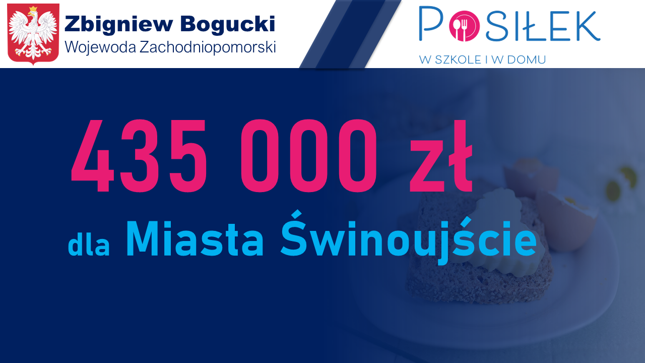 Wczoraj w Zachodniopomorskim Urzędzie Wojewódzkim, w imieniu Prezydenta Miasta Janusza Żmurkiewicza, umowę na dofinansowanie odebrała jego zastępczyni Barbara Michalska. Zgodnie ze wspomnianą umową na realizację programu „Posiłek w szkole i w domu” Miasto przeznacza również środki ze swojego budżetu w wysokości min. 40 procent kosztów.