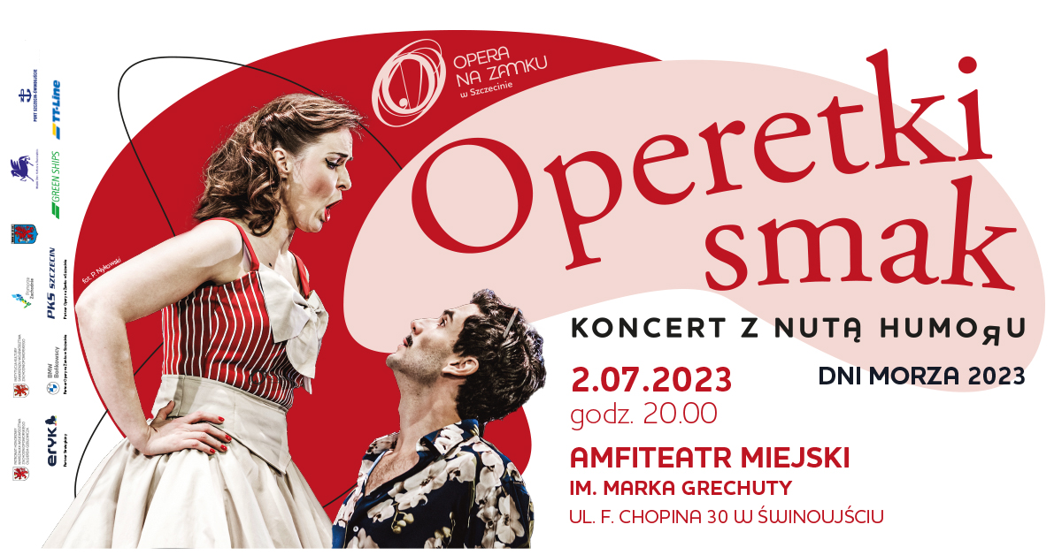 W lipcowy letni wieczór zapraszamy widzów do amfiteatru w Świnoujściu na muzyczną ucztę - koncert „Operetki smak” z uwielbianymi szlagierami. W bogatym repertuarze koncertu nie zabraknie najpiękniejszych arii operowych, pełnych dowcipu fragmentów operetek oraz wirtuozerskich popisów orkiestry. W programie znajdą się także porywające i energetyczne piosenki z najsłynniejszych musicali.