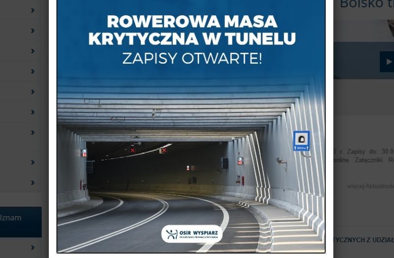 Można już zapisywać się na Rowerową Masę Krytyczną w tunelu pod Świną. Przejazd odbędzie się 30 czerwca o godz. 14. Wcześniej w tunelu odbędzie się bieg. Formularz rejestracyjny dostępny jest na stronie OSiR Wyspiarz - LINK.