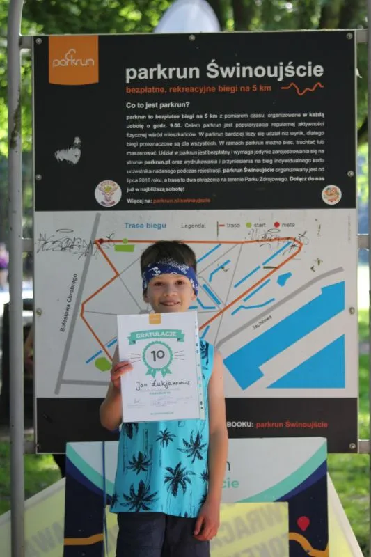 Gościł u nas (tzn. bardziej u swoich dziadków) Janek ŁUKJANOWICZ, który dzielnie pokonał swój 10 parkrun w juniorskim życiu czym uhonorowany został przy akompaniamencie oklasków stosownym dyplomem. Wolontariusze jak zwykle spisali się na medal – pomiar czasu ponoć został włączony dla pewności dzień wcześniej (oczywiście to taki branżowy żarcik) – nie mniej jednak dziękujemy im bardzo gorąco a w nagrodę zostanie im wpisana pochwała do akt.
