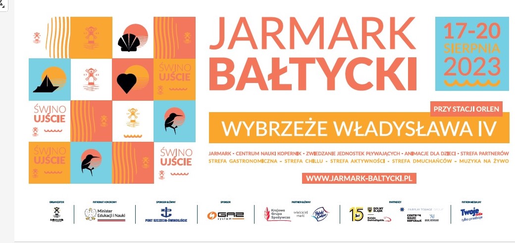 Od 17 do 20 sierpnia 2023 r., na nabrzeżu wzdłuż ul. Wybrzeże Władysława IV za stacją paliw PKN Orlen w Świnoujściu, odbędzie się Jarmark Bałtycki 2023!