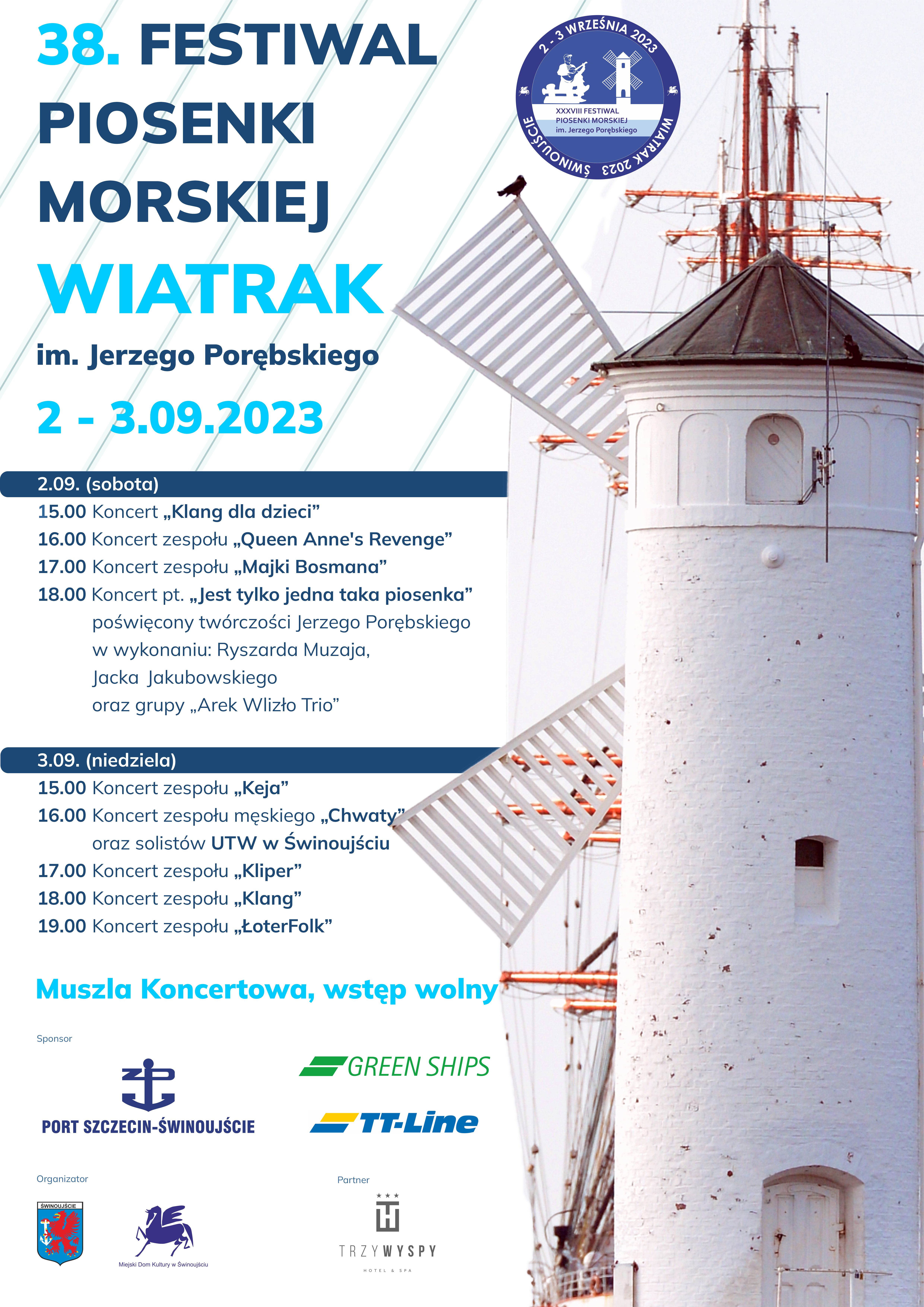 Program XXXVIII Festiwalu Piosenki Morskiej „Wiatrak 2023” im. Jerzego Porębskiego