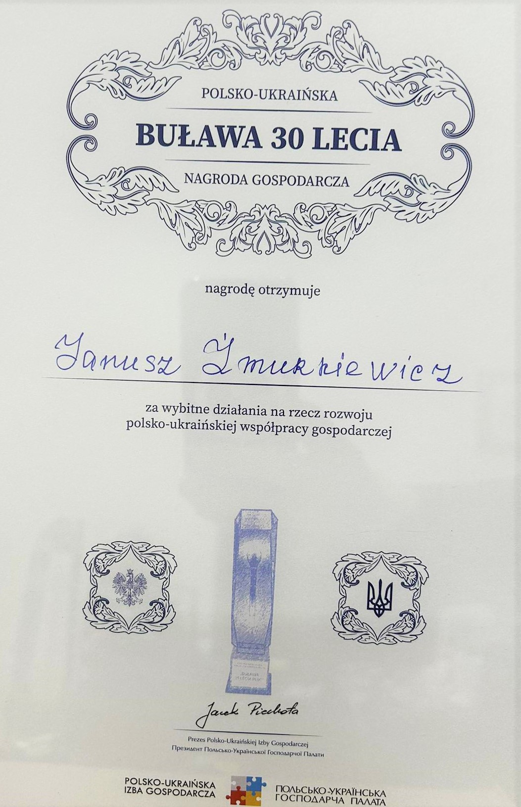 Podczas gali 30-lecia Polsko-Ukraińskiej Izby Gospodarczej Prezydent Miasta Świnoujście odebrał dwa wyjątkowe wyróżnienia. Buławę 30-lecia za działania na rzecz rozwoju polsko-ukraińskiej współpracy gospodarczej. Natomiast z rąk prof. Michała Kleibera z fundacji Teraz Polska Prezydent Miasta odebrał wyróżnienie „Promotor Polski”, wręczane tym, którzy poprzez dokonania i zaangażowanie przyczyniają się do propagowania oraz umacniania pozytywnego wizerunku naszego kraju oraz budują wizerunek marki narodowej.