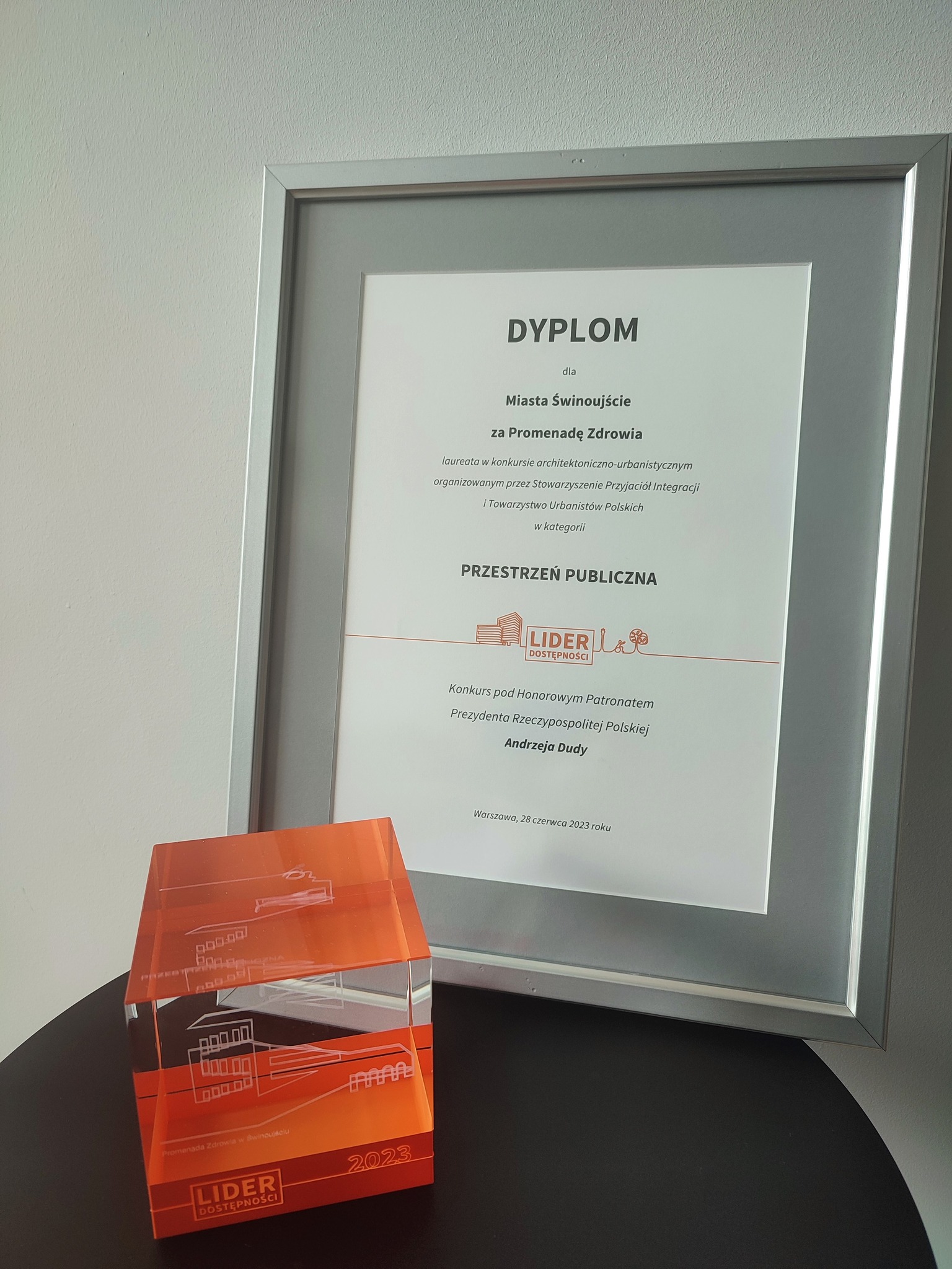 Promenada Zdrowia otrzymała nagrodę Lider Dostępności 2023 w kategorii przestrzeń publiczna. Kapituła konkursu przyznała nam tę nagrodę za – jak to określono – unikatowy projekt, który stworzył w centrum kurortu rozległą przestrzeń zachęcającej do aktywnego wypoczynku oraz bezpośredniego obcowania z przyrodą. Podkreśliła też, że promenada ta odznacza się dużym zrozumieniem zasad projektowania uniwersalnego, zapewniając dostępność bez konieczności wprowadzania specjalnych rozwiązań dedykowanych konkretnym grupom odbiorców. Wręczenie nagród odbyło się w Pałacu Prezydenckim w Warszawie. Promenadę Zdrowia zaprojektowali architekci z Pracowni Projektowej PP Studio Patryk Pniewski. Inwestorem było Miasto Świnoujście.