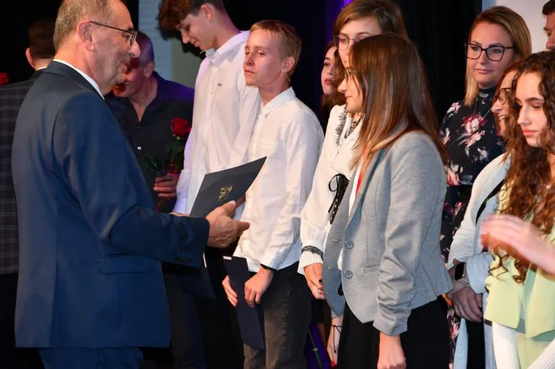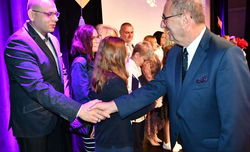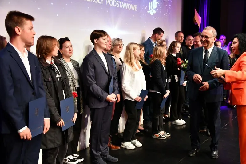 Na gali Prezydent miasta złożył gratulacje dla dyrektorów placówek  wyróżnionych uczniów oraz nauczycielom, którzy przygotowywali uczniów do konkursów przedmiotowych: