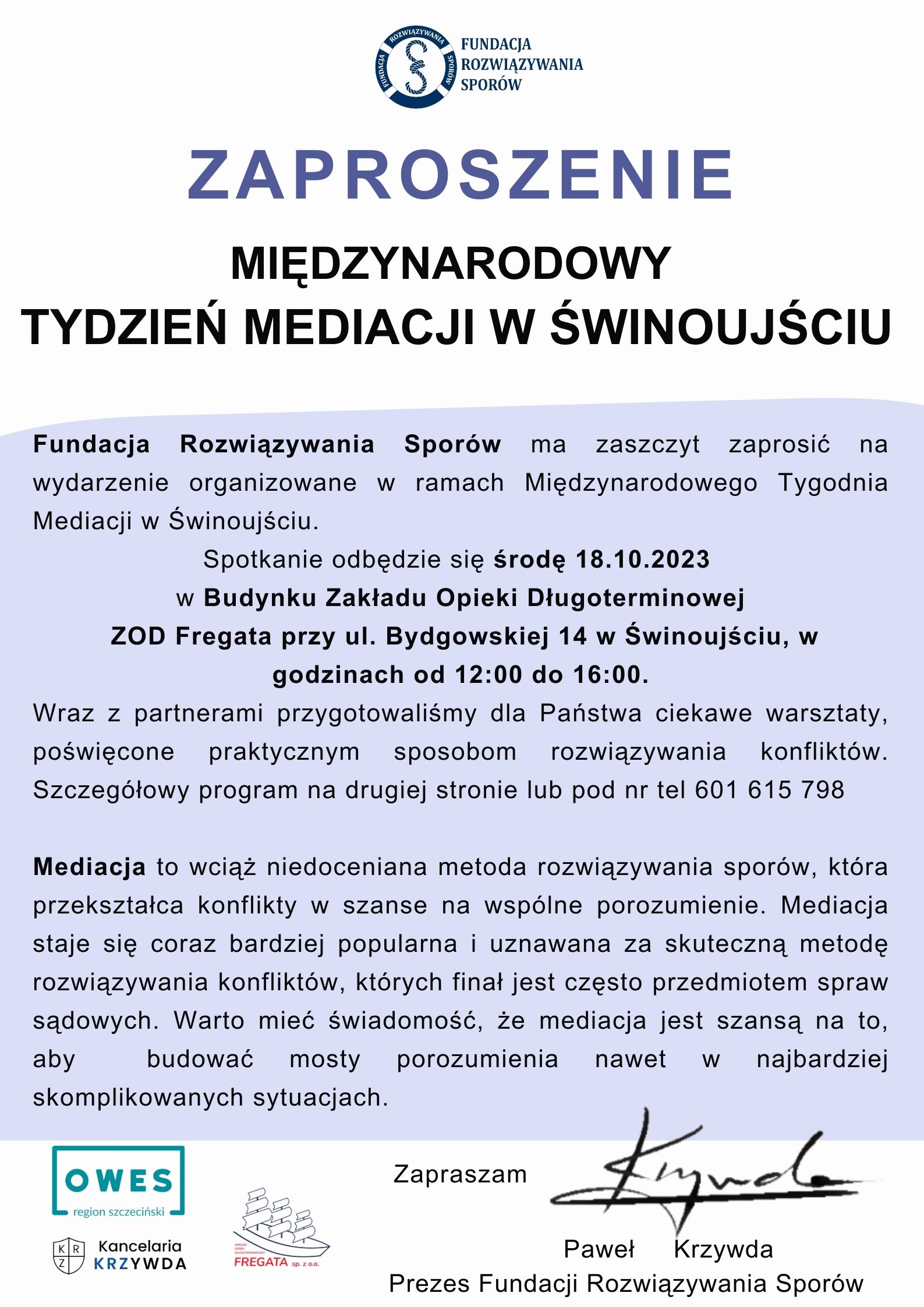 Zapraszamy na Międzynarodowy Tydzień Mediacji w Świnoujściu