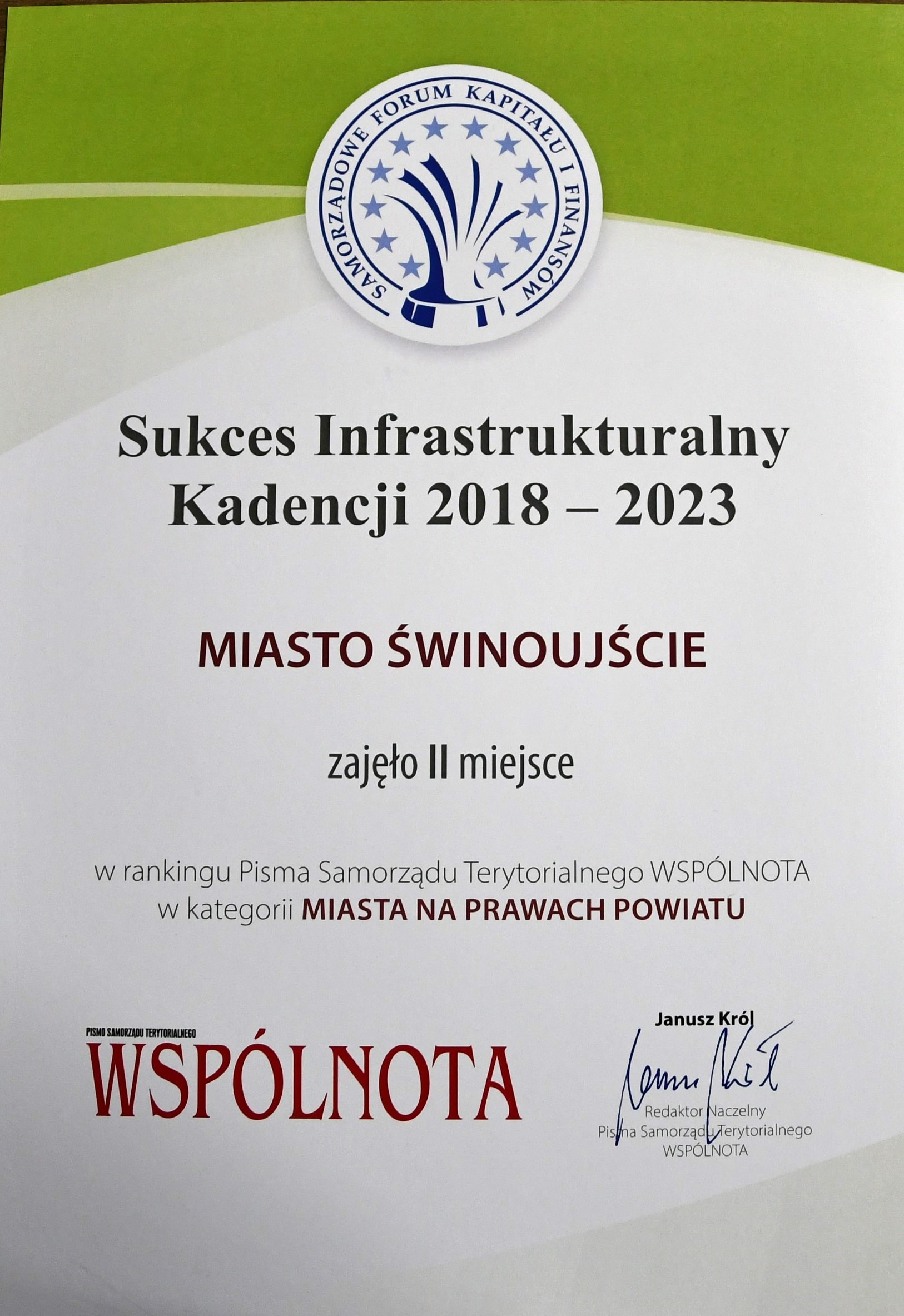 W kategorii miasta na prawach powiatu Świnoujście po raz pierwszy zostało liderem za lata 2016 – 2018. Drugi za 2017 – 2019, trzeci za okres 2018 – 2020, czwarty za 2019 - 2021 i teraz po raz piąty za lata 2020-2022.