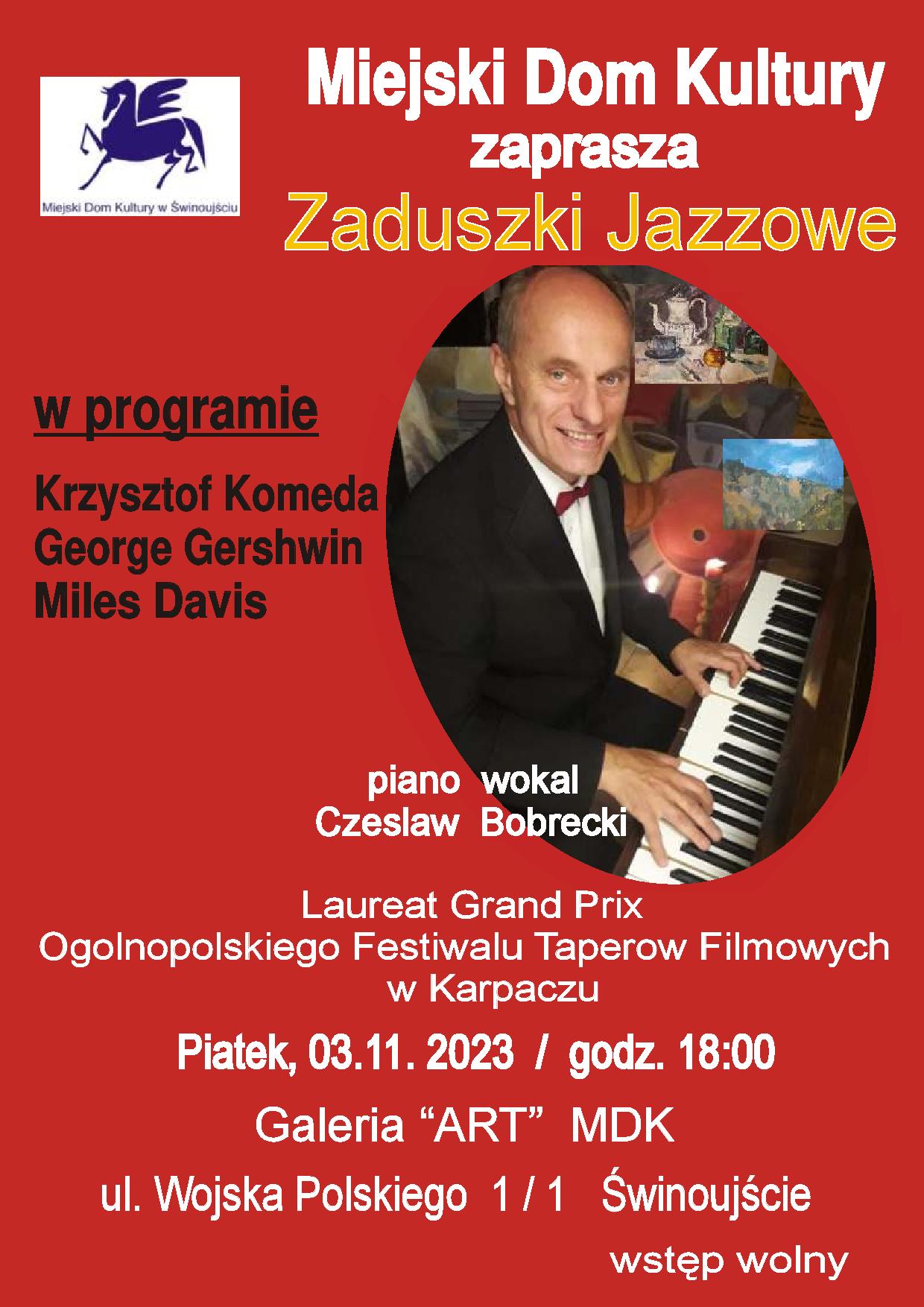 W pierwszy listopadowy weekend (3.11), zapraszamy na wieczór łączący klimaty Dnia Zadusznego z dobrą muzyką. W Galerii ART MDK przy ul. Wojska Polskiego 1/1 zagra Czesław Bobrecki, pianista jazzowy ze Świnoujścia. Początek o godz. 18.00, wstęp wolny.