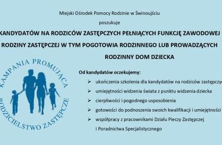 KANDYDATÓW NA RODZICÓW ZASTĘPCZYCH PEŁNIĄCYCH FUNKCJĘ ZAWODOWEJ RODZINY ZASTĘPCZEJ W TYM POGOTOWIA RODZINNEGO LUB PROWADZĄCYCH RODZINNY DOM DZIECKA