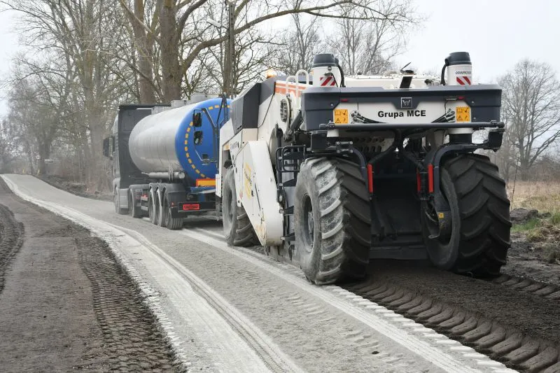 Na ulicy Mostowej wykonawca rozpoczął wykonywanie podbudowy po przyszłą nawierzchnię jezdni. Jej wytwarzanie odbywa się na miejscu.