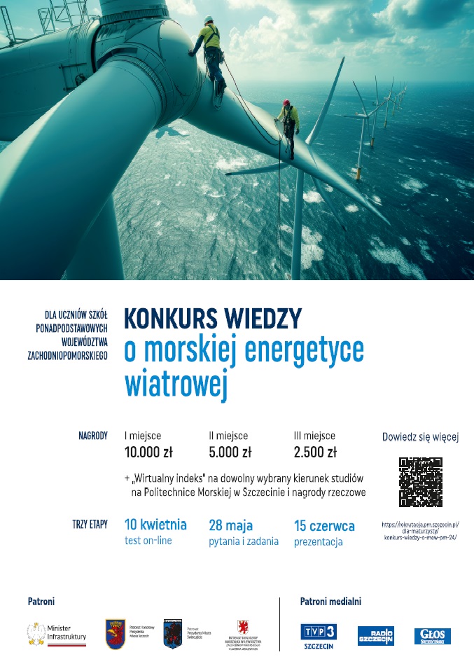 Rusza wielki konkurs wiedzy o morskiej energetyce wiatrowej dla uczniów szkół ponadpodstawowych województwa zachodniopomorskiego. Do wygrania są trzy indeksy Politechniki Morskiej i nawet 10 tysięcy zł od ORLEN Neptun. Zapisy trwają do 4 kwietnia.