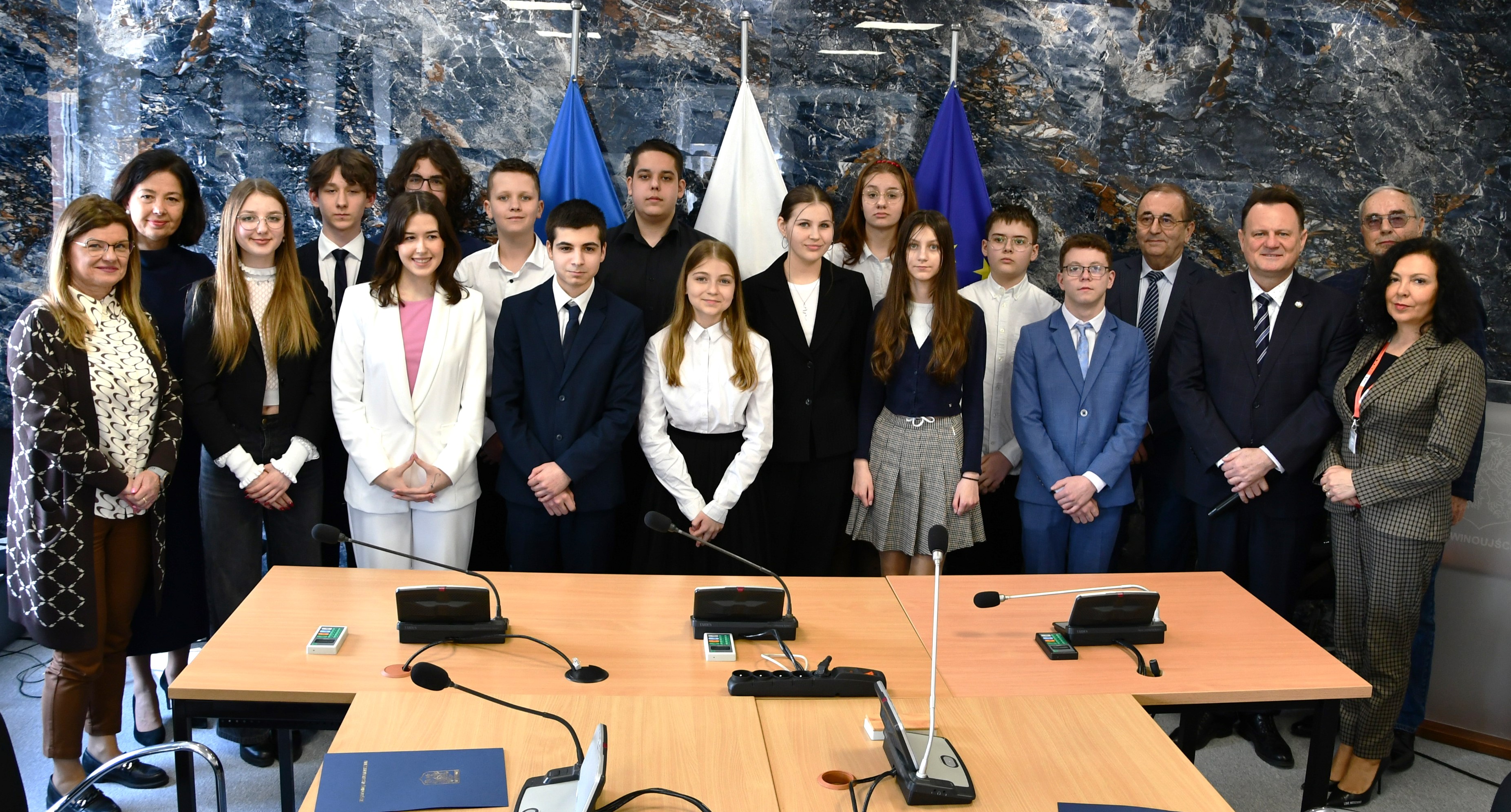 13 młodych świnoujścian, uczniów szkół średnich, otrzymało oficjalne zaświadczenia o wyborze do Młodzieżowej Rady Miasta Świnoujście z rąk Prezydenta Miasta.