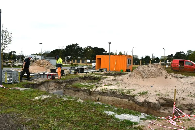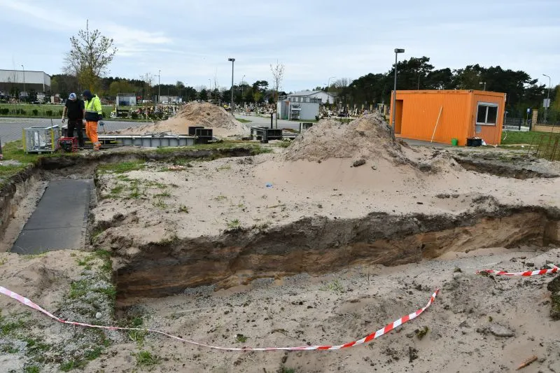 Na nowej części cmentarza trwa budowa kolumbarium. Stanie tuż przy bramie wejściowej.