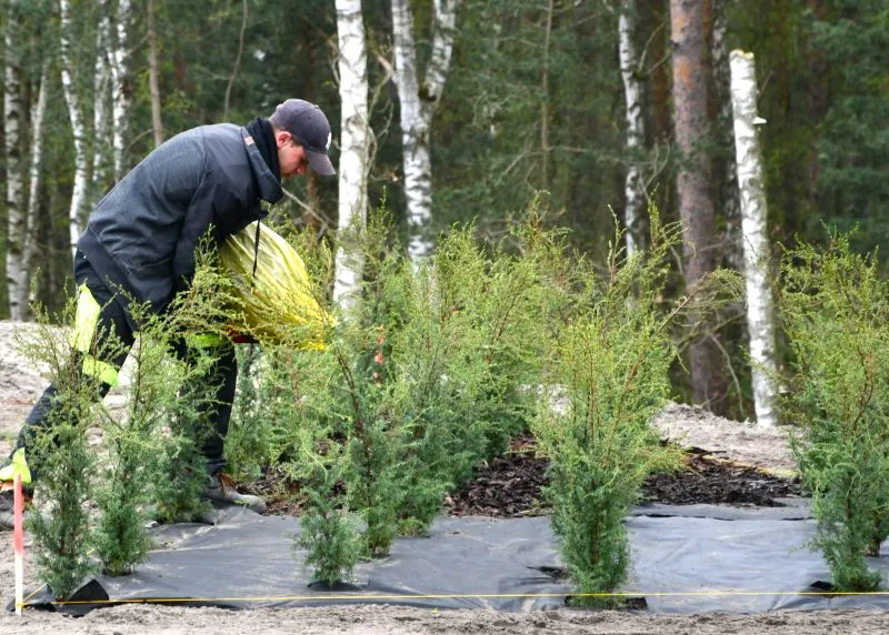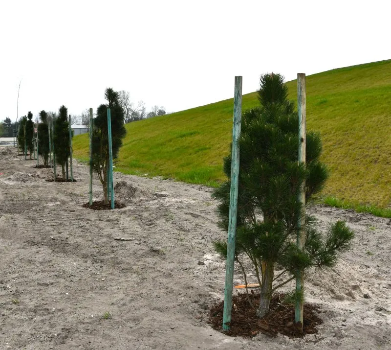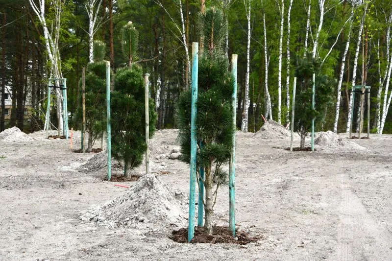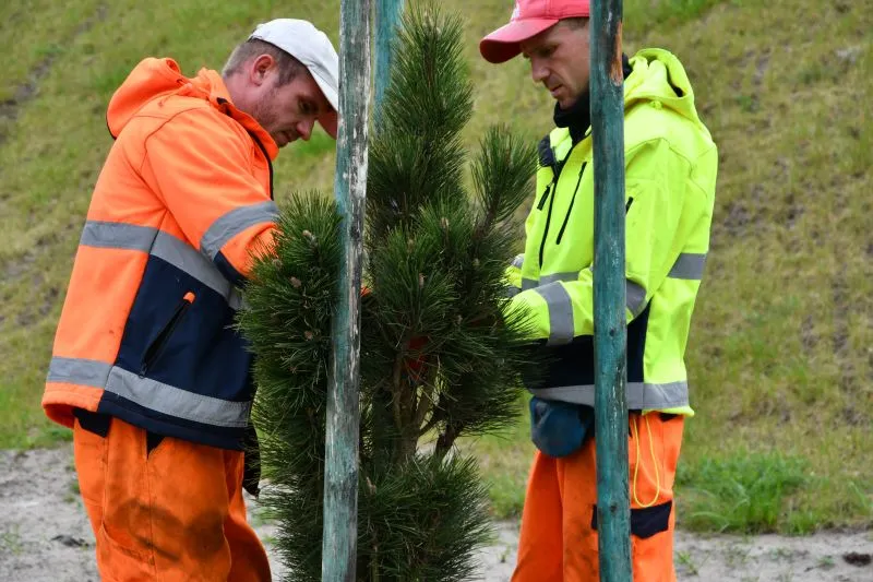 Wśród posadzonych drzew są klony i sosny oraz jałowiec. Wszystkie zostały odpowiednio nawiezione, wysypany został także specjalny granulat, który zatrzymuje wodę na dłuższy czas. Dzięki niemu nawet, gdy przez 3 tygodnie nie będzie padać, to korzenie będą miały wodę. A każdy nowy opad deszczu znów uzupełnia granulat w wodę.